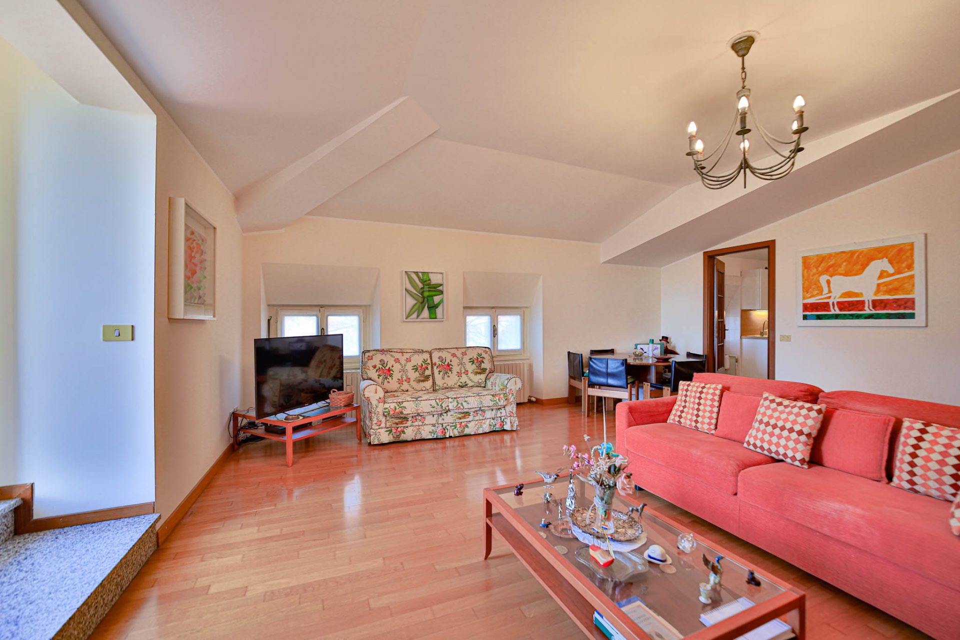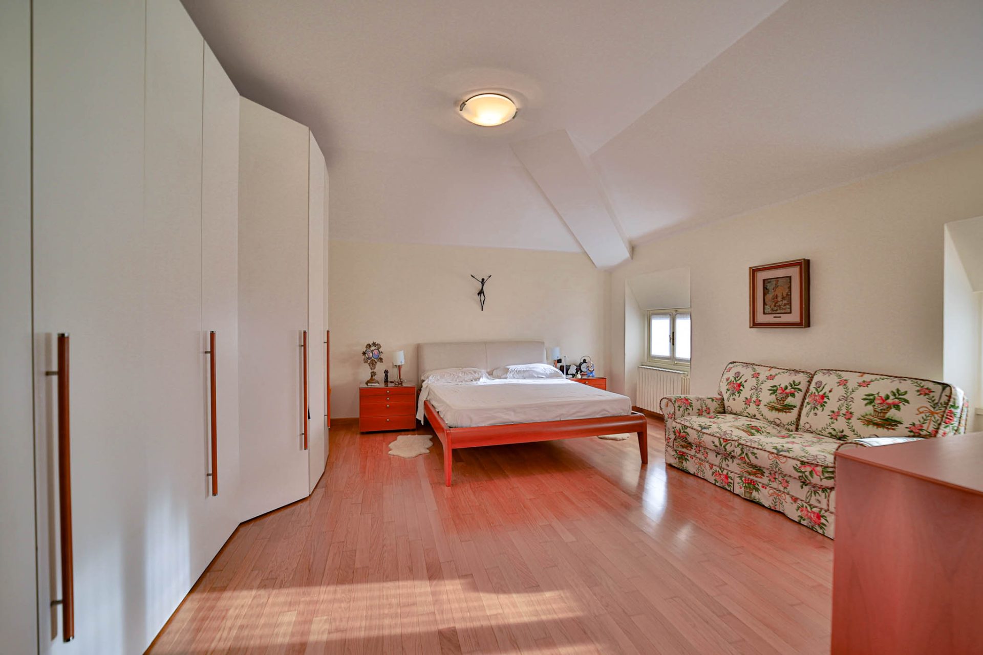 Situato al secondo ed ultimo piano, l’immobile si estende su 135 mq ed è baciato da una vista panoramica impareggiabile sul lato sud, che abbraccia l’intera Pianura Padana regalando tramonti di rara bellezza e una luminosità straordinaria durante tutto il giorno.