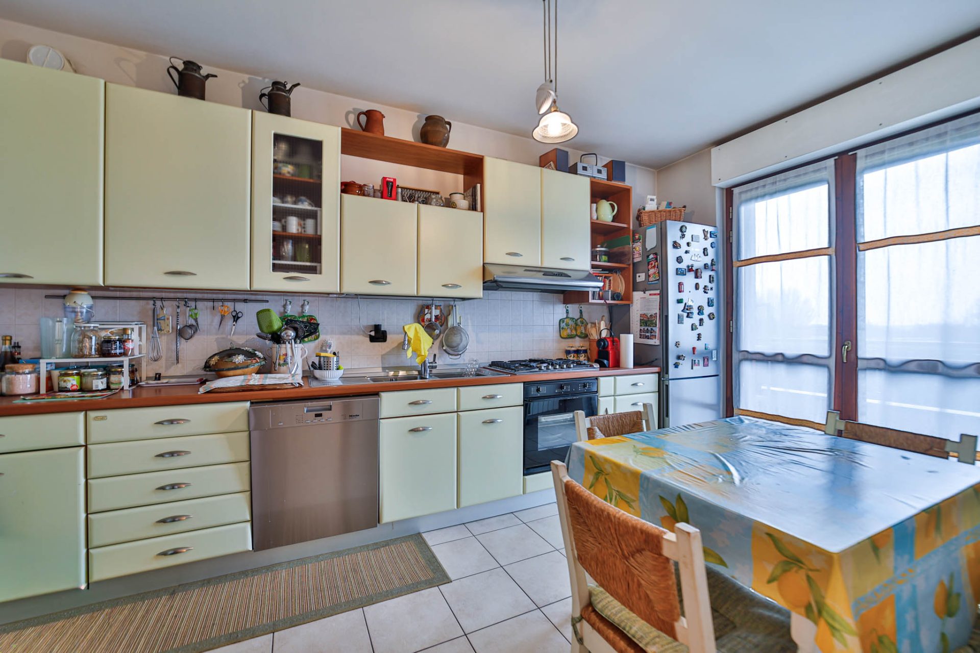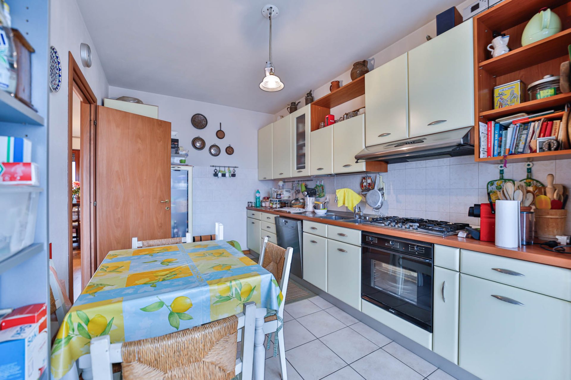 La casa accoglie con un soggiorno ampio e luminoso, valorizzato dalla doppia esposizione opposta che, oltre a regalare luce naturale per tutta la giornata, garantisce un eccellente ricambio d’aria, assicurando ambienti sempre freschi e salubri. Gli affacci si aprono su un piacevole terrazzo di 13 mq, perfetto per pranzi all’aperto o momenti di relax, oltre a un balcone di 5 mq che amplia ulteriormente lo sfogo esterno. La cucina è abitabile, spaziosa e funzionale, anch’essa con uscita diretta sul terrazzo esposto a sud: uno spazio ideale per vivere la quotidianità con comfort e convivialità.