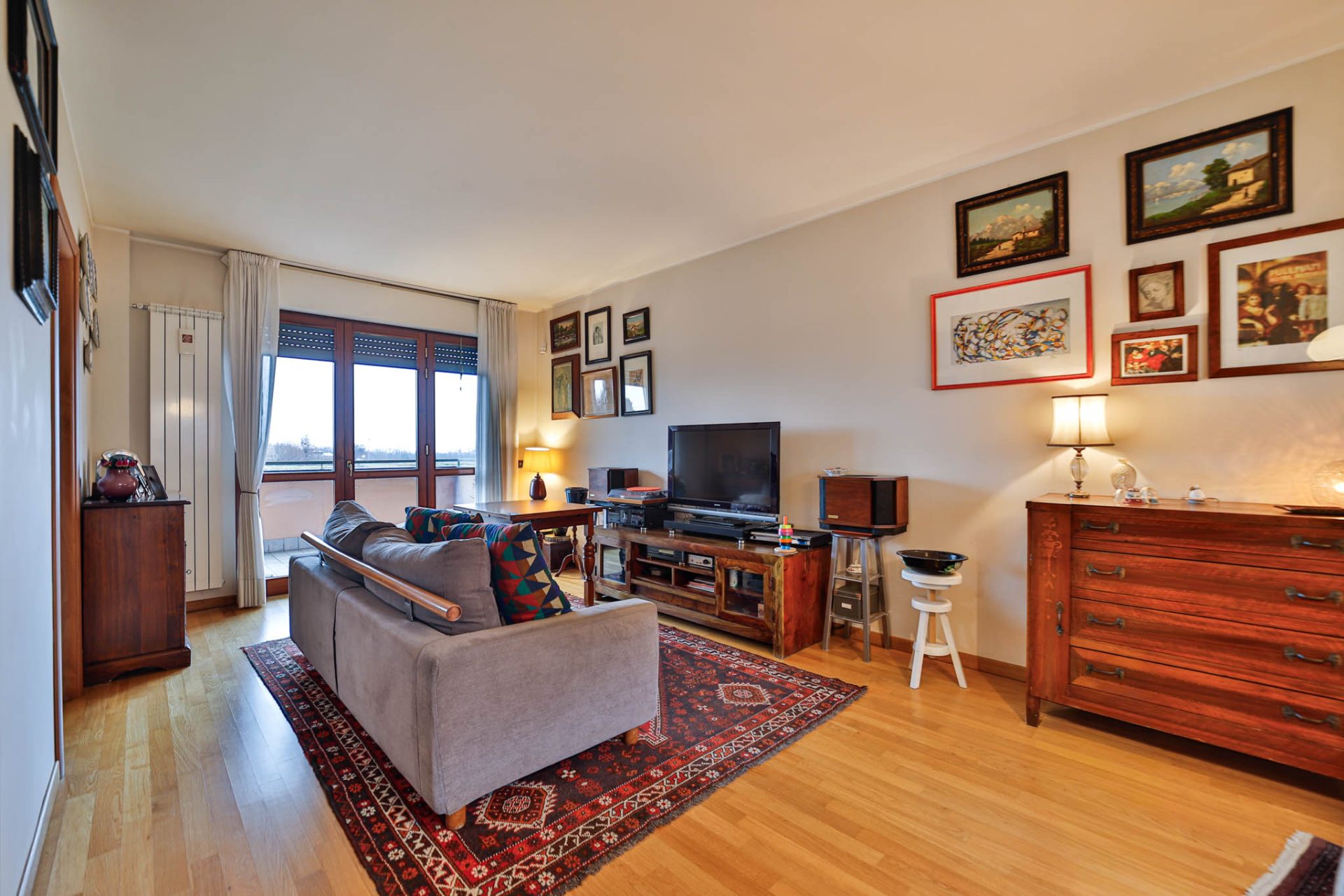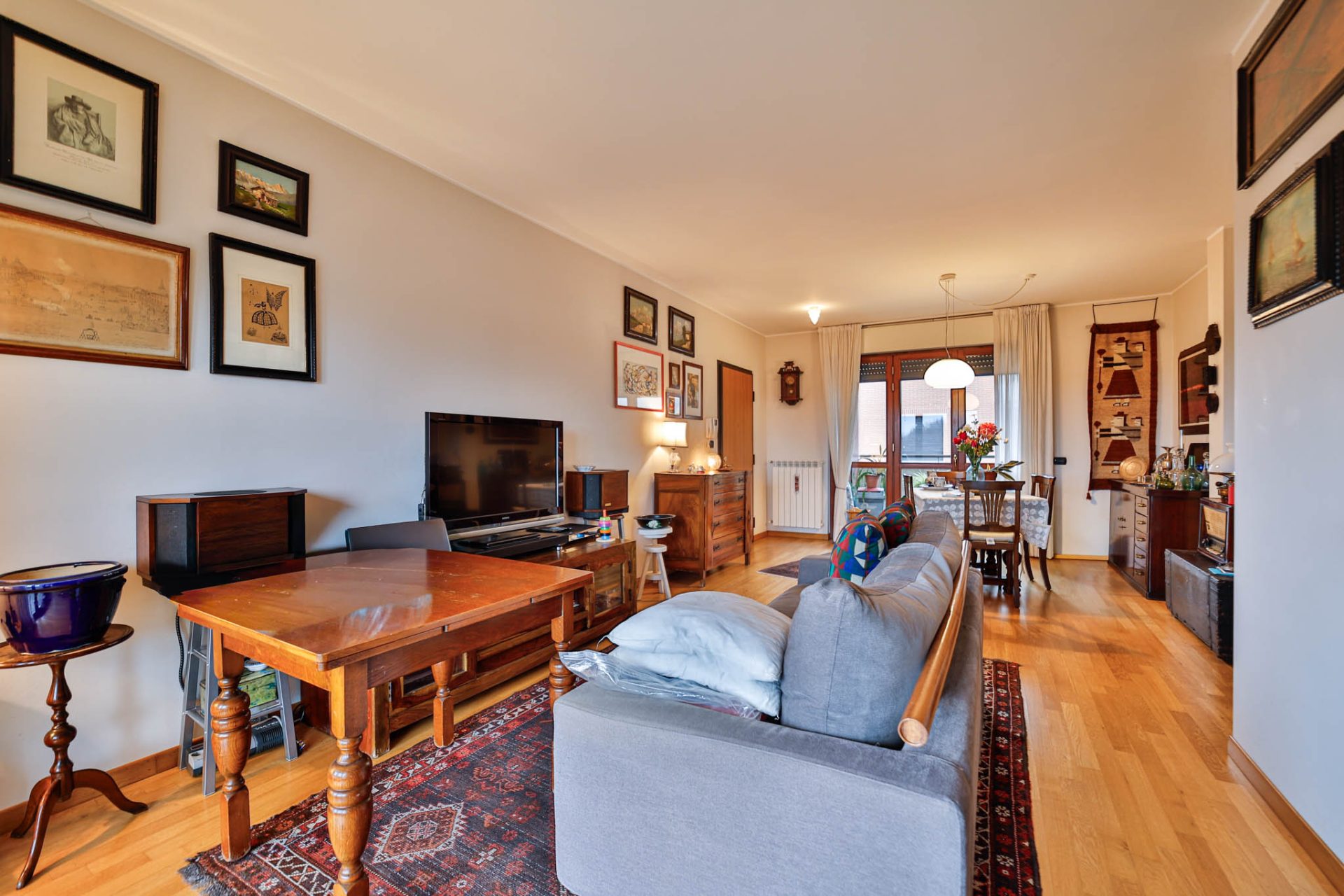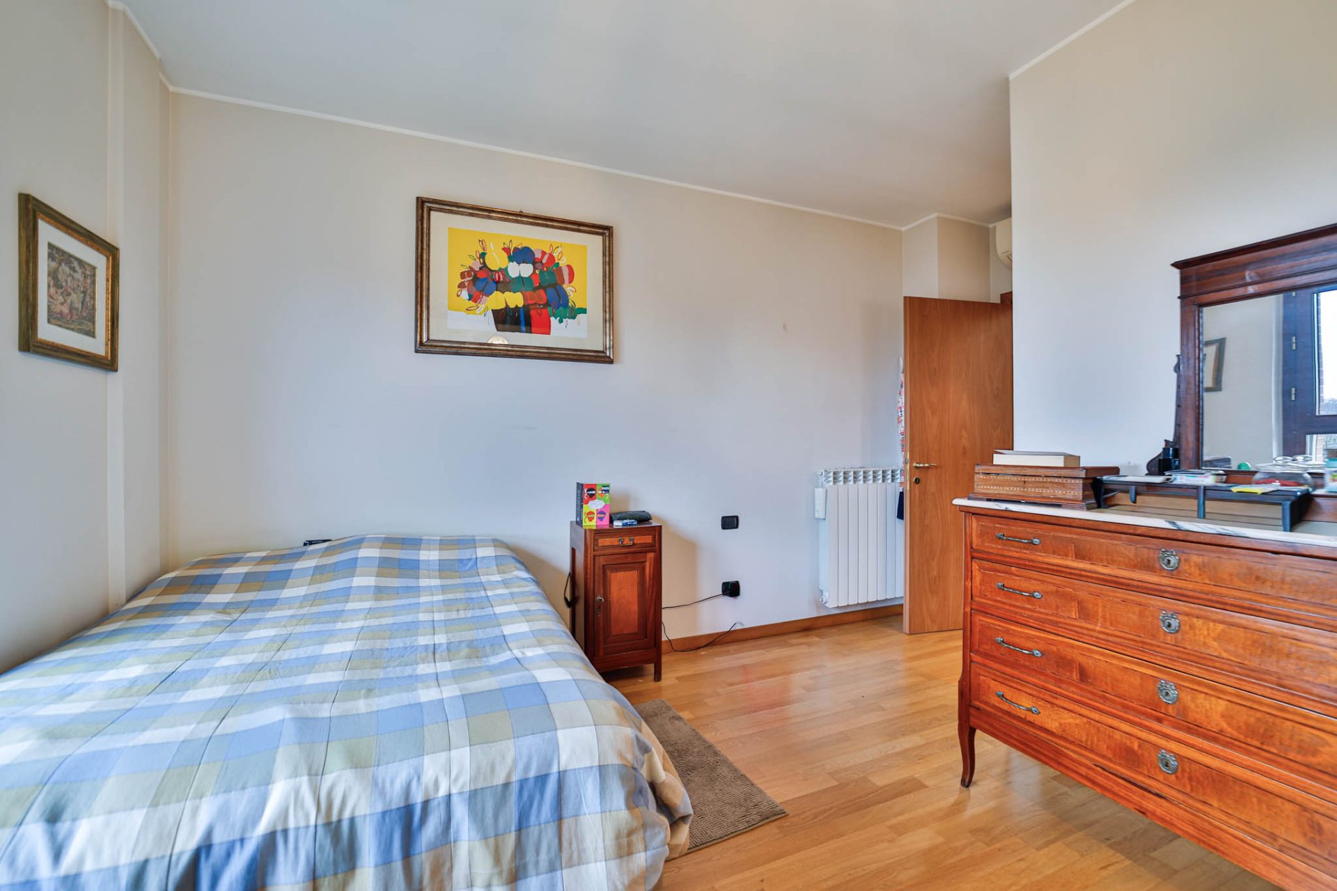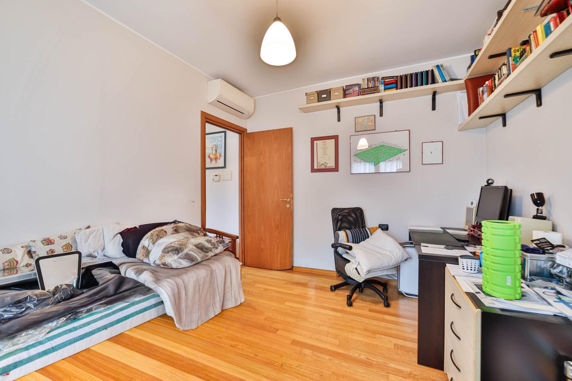 Un comodo disimpegno accompagna alla zona notte, ben separata e organizzata. Qui trovano spazio tre camere da letto, tra cui una matrimoniale con bagno padronale, oltre a un secondo bagno finestrato di servizio. Gli ambienti risultano armoniosi e accoglienti, impreziositi dalla pavimentazione in parquet presente in tutta l’abitazione, ad eccezione della cucina e dei bagni.
