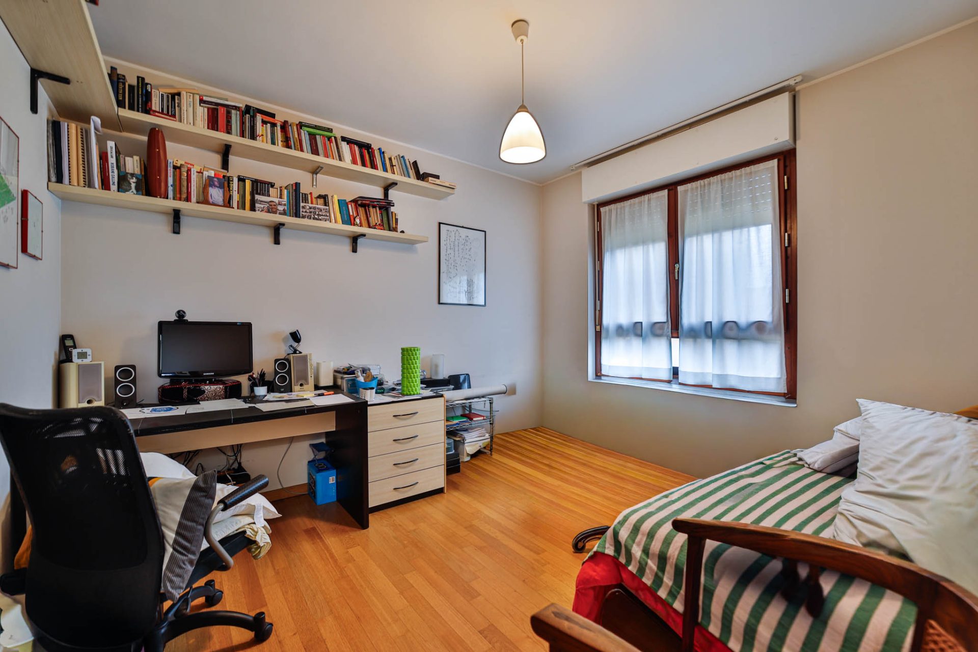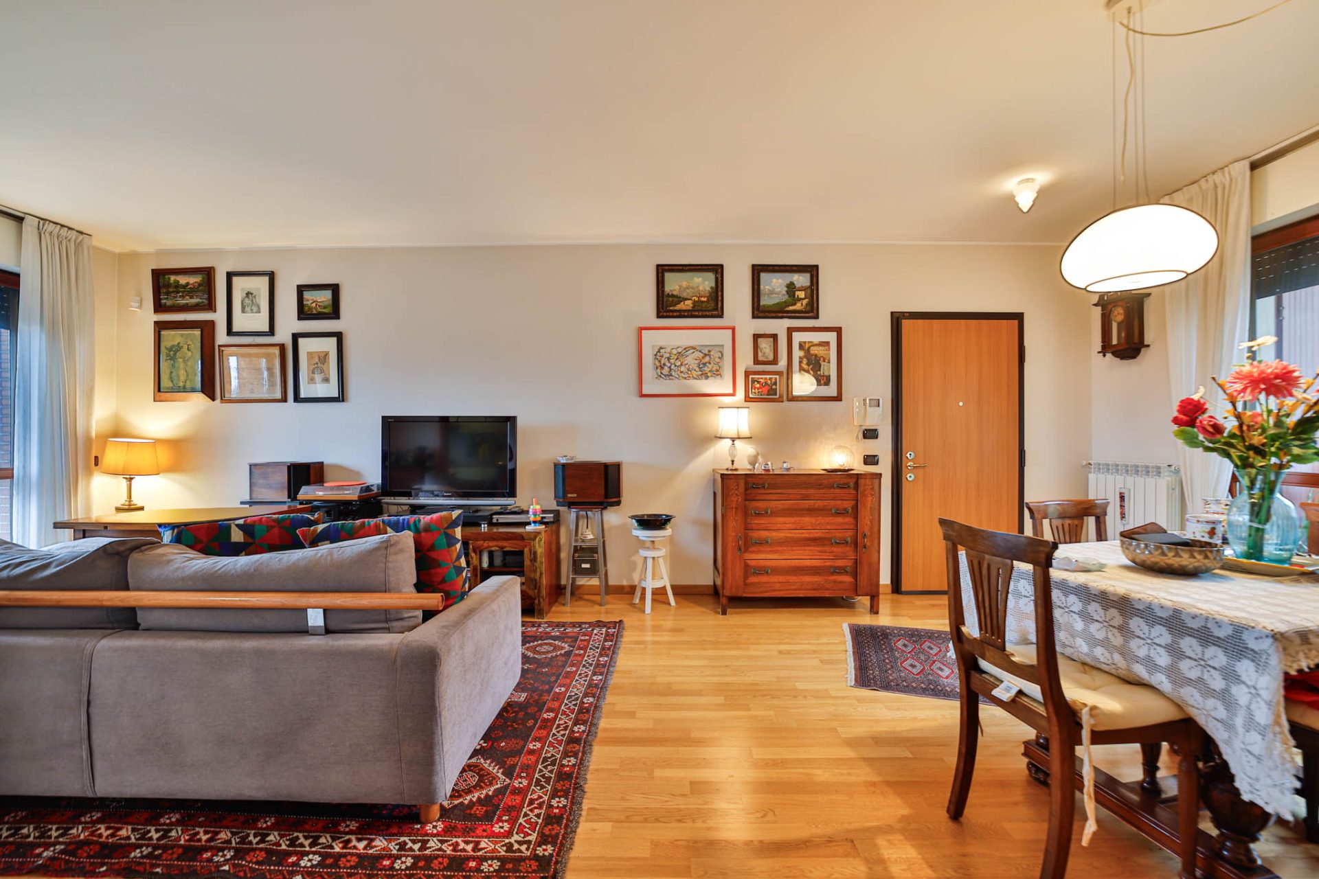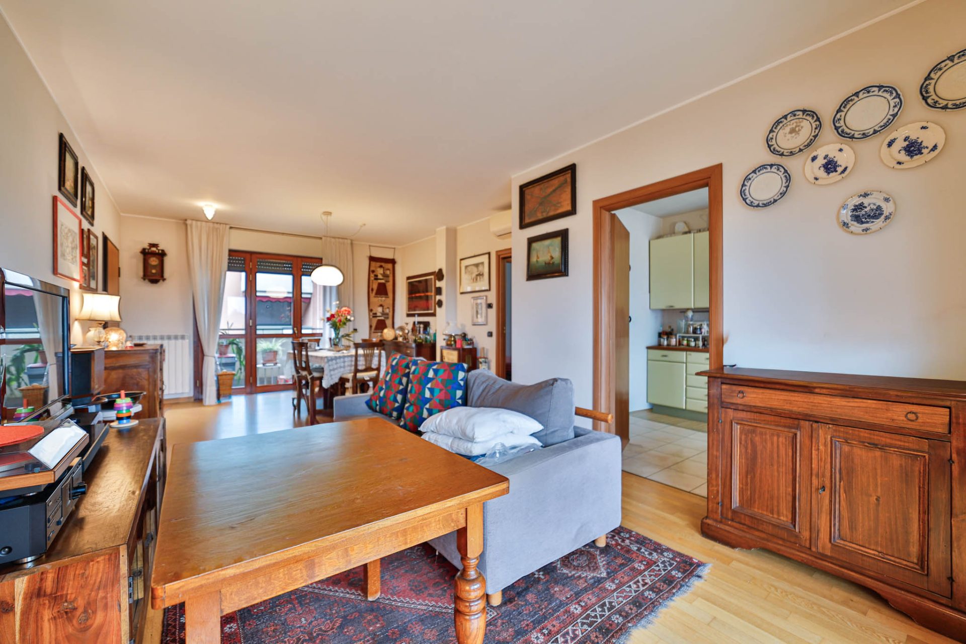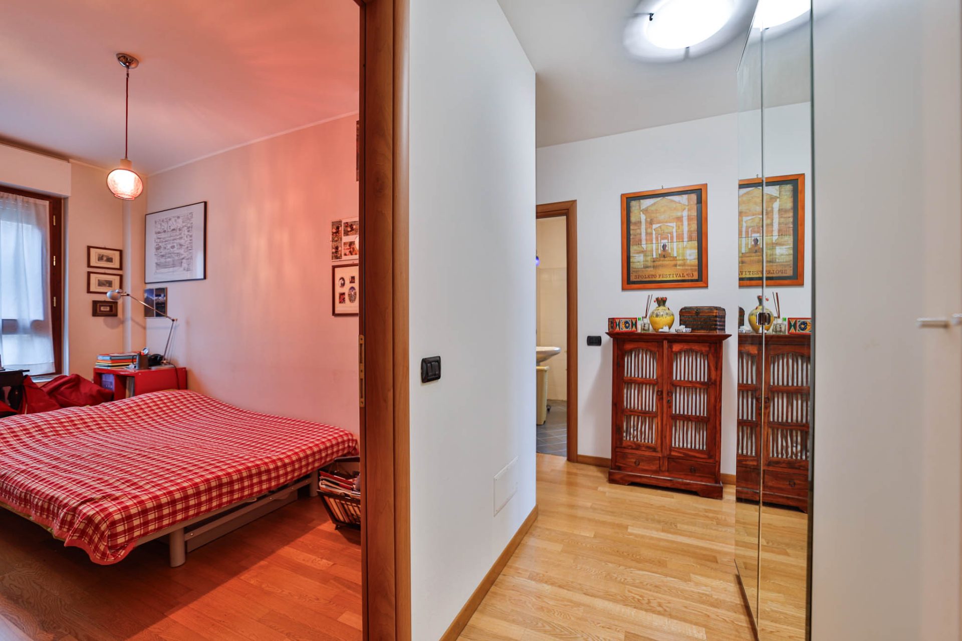 Un comodo disimpegno accompagna alla zona notte, ben separata e organizzata. Qui trovano spazio tre camere da letto, tra cui una matrimoniale con bagno padronale, oltre a un secondo bagno finestrato di servizio. Gli ambienti risultano armoniosi e accoglienti, impreziositi dalla pavimentazione in parquet presente in tutta l’abitazione, ad eccezione della cucina e dei bagni.