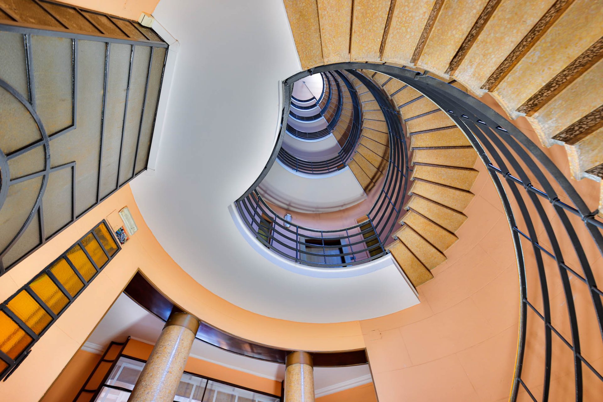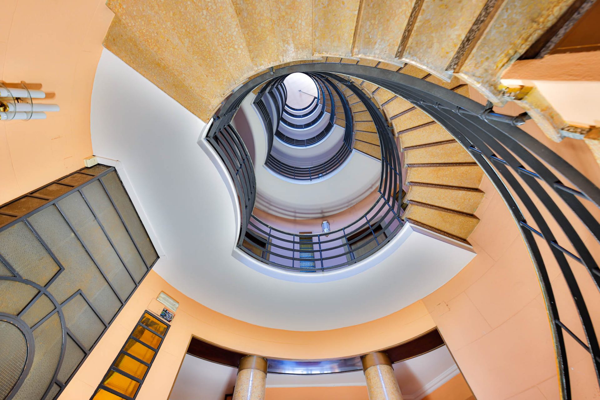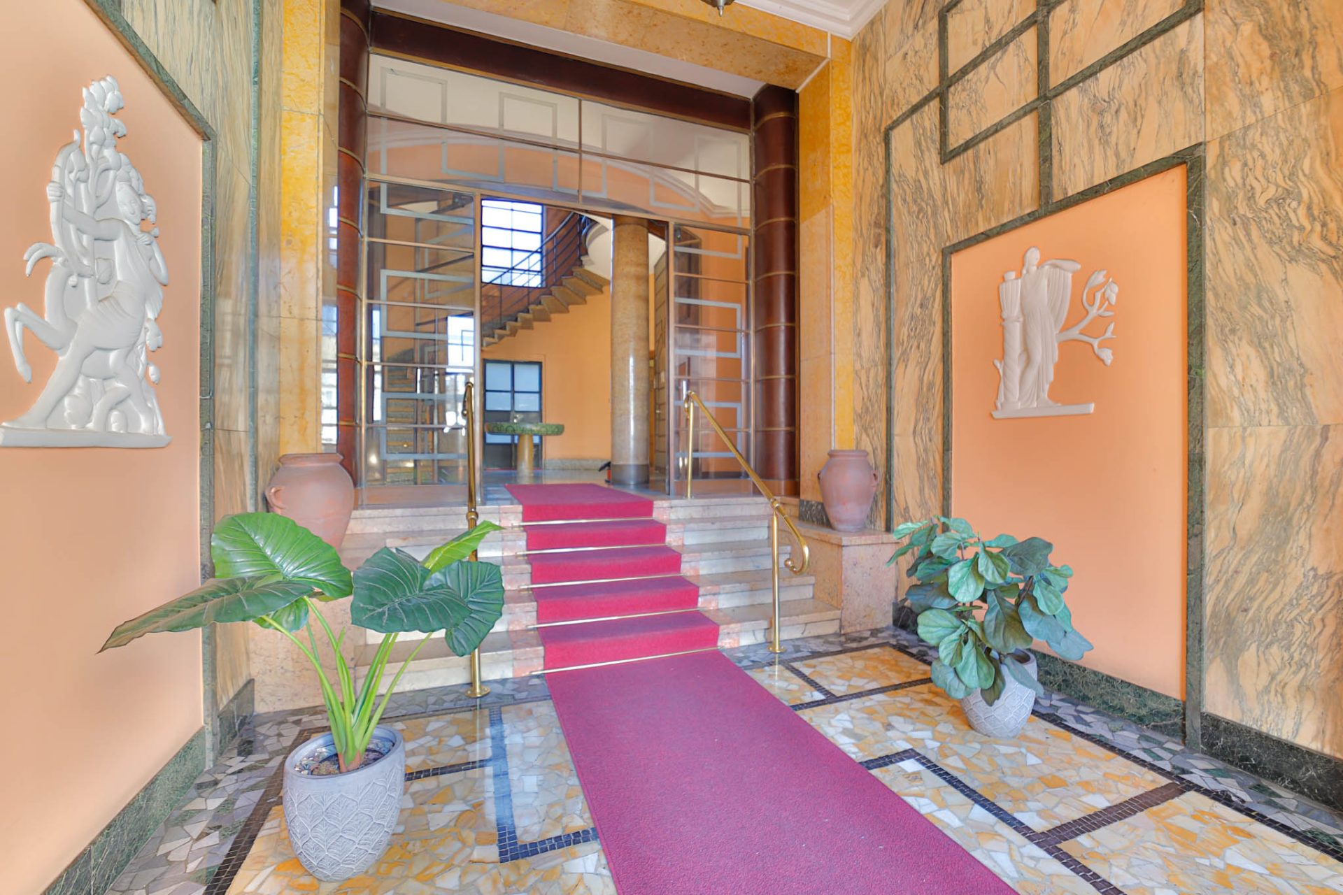 L’edificio si distingue per il suo ingresso di grande rappresentanza, impreziosito da un colonnato in pietra e da una scenografica scala circolare che collega armoniosamente tutti i piani dello stabile, conferendo prestigio e identità all’intero contesto.