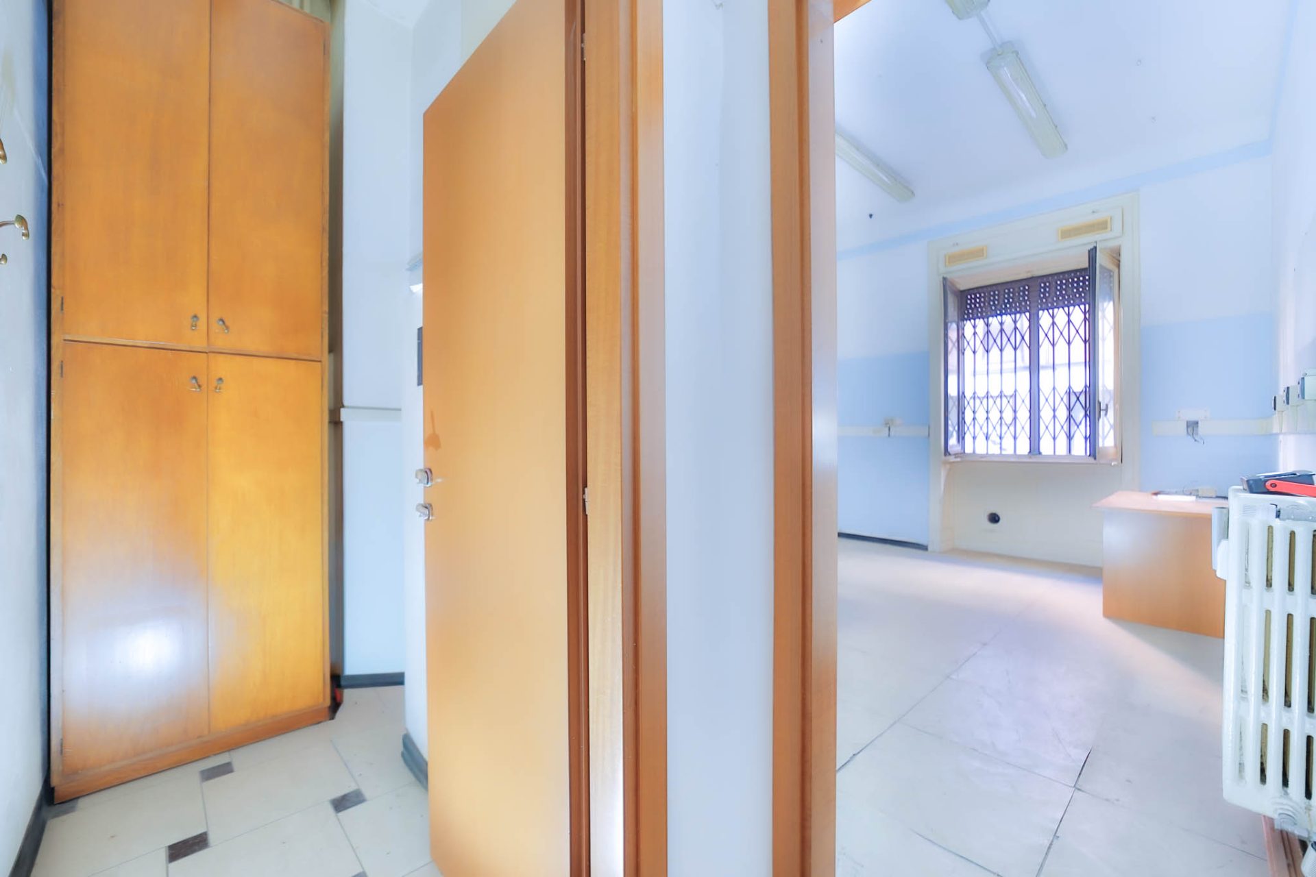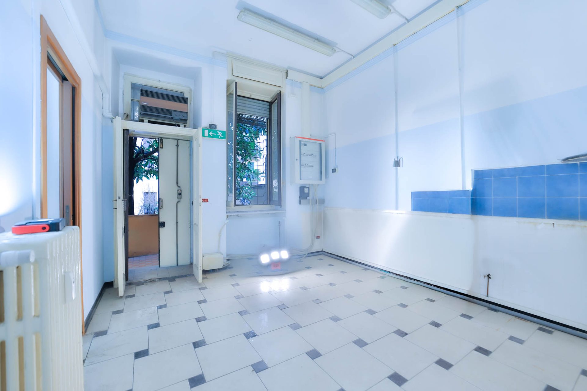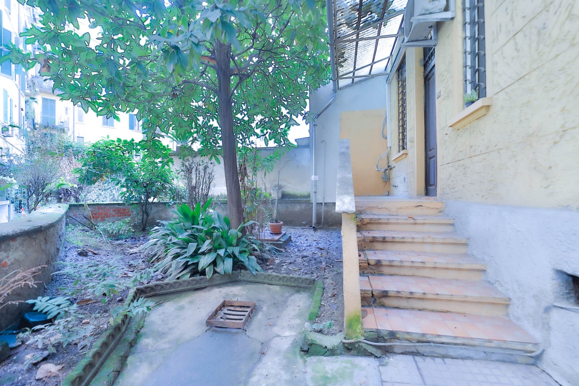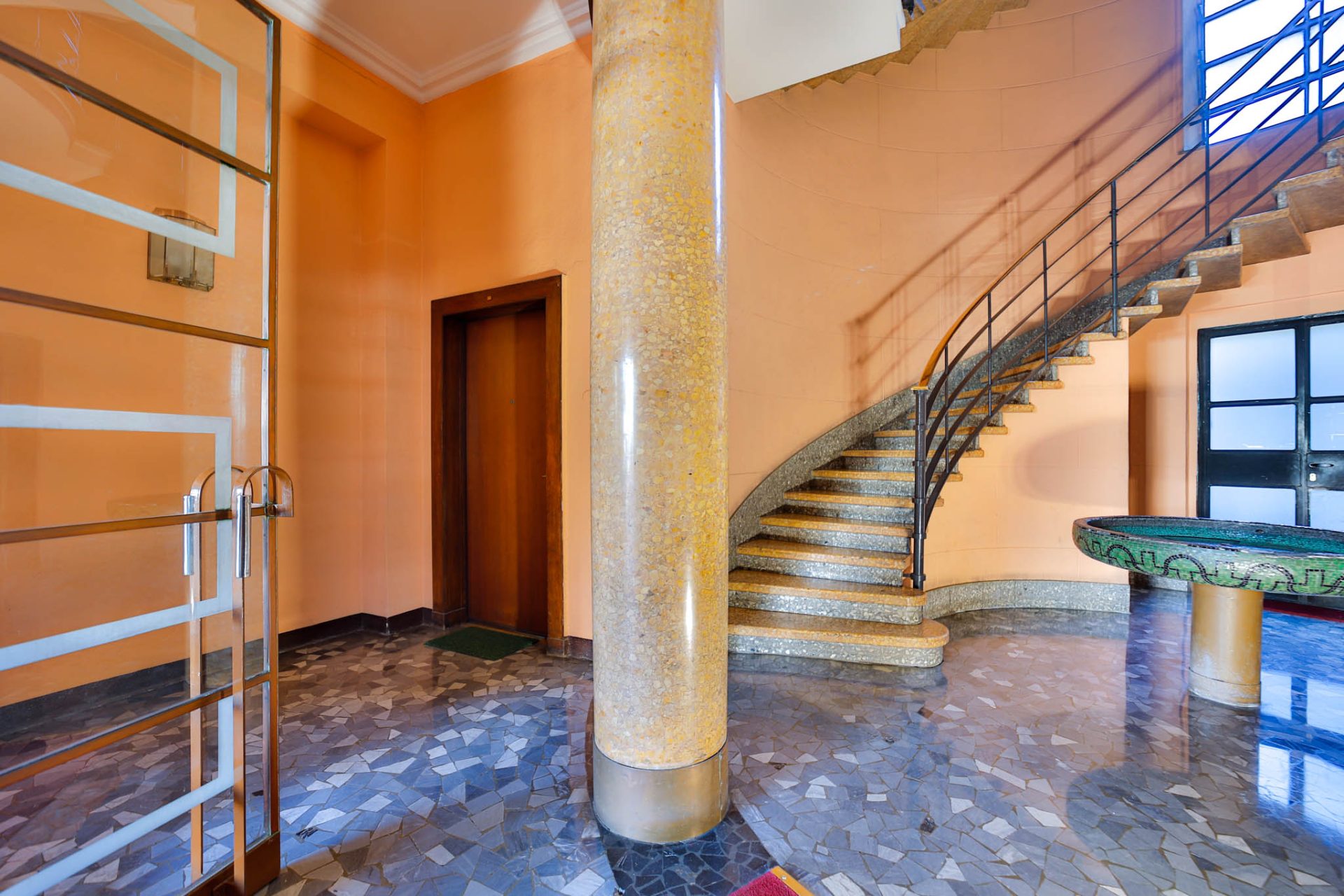 Una soluzione rara per metratura, posizione e doppia destinazione d’uso, inserita in uno stabile di carattere che conserva tutto il fascino dell’architettura milanese anni ’40.