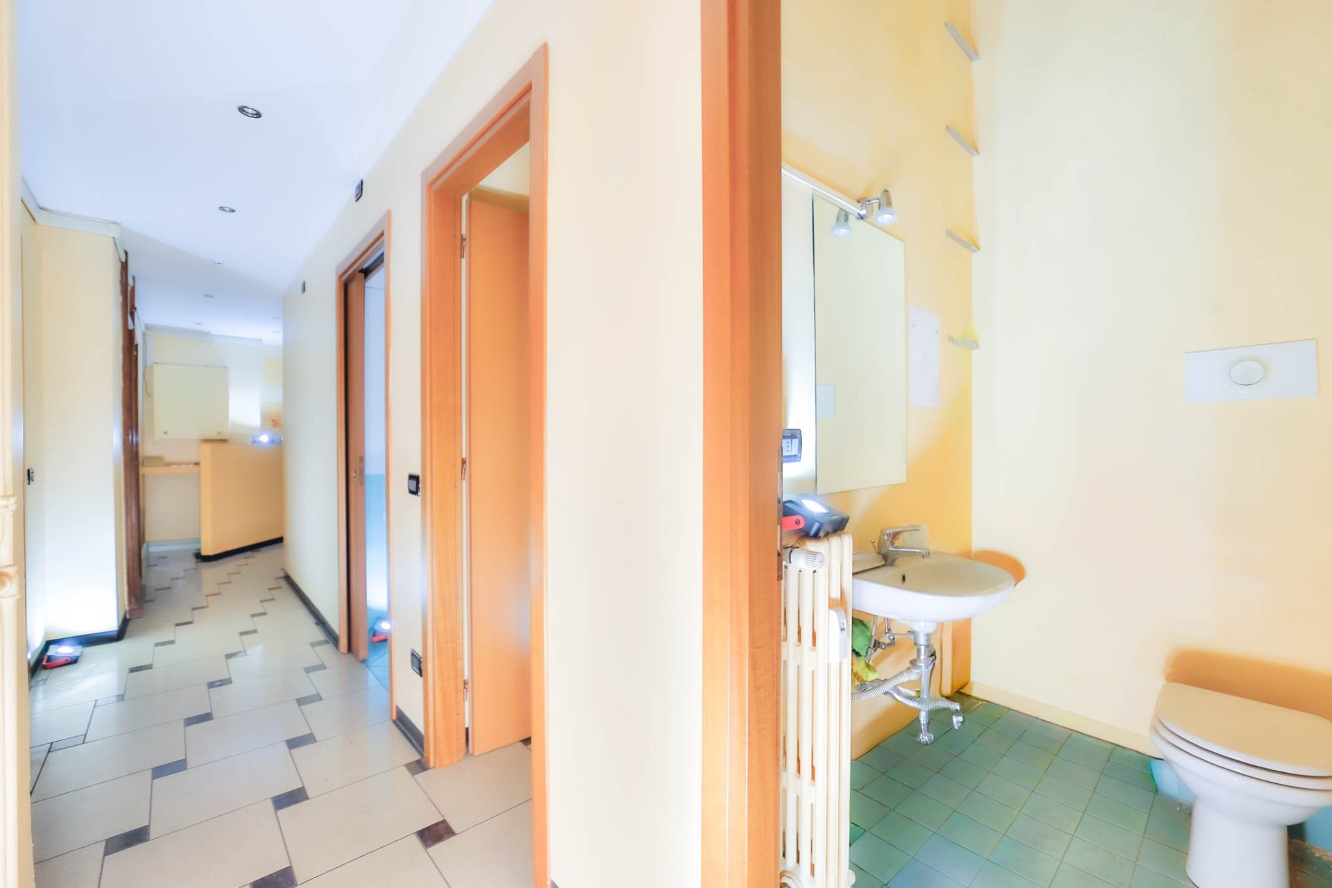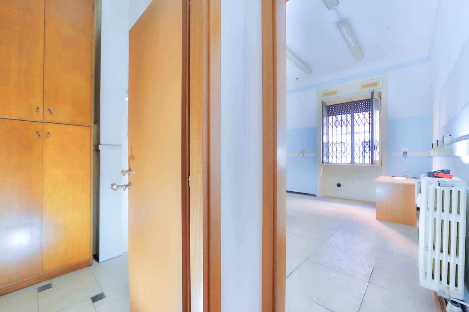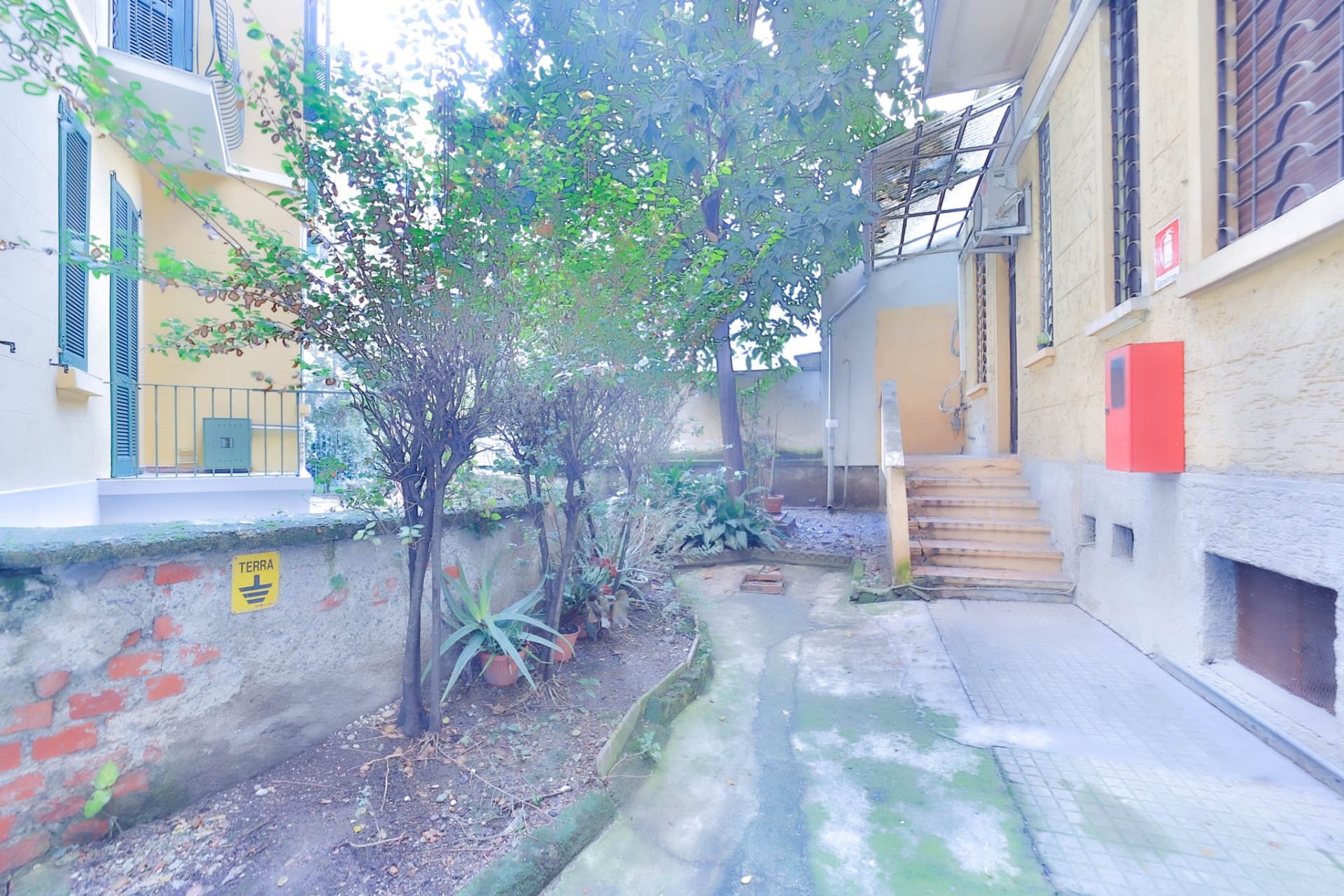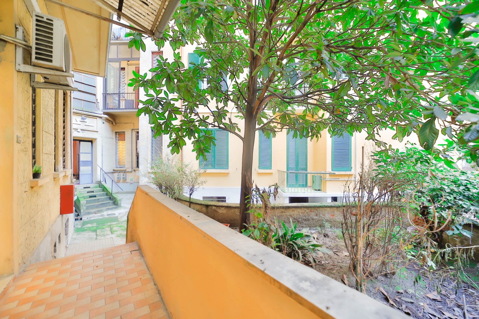 Una soluzione rara per metratura, posizione e doppia destinazione d’uso, inserita in uno stabile di carattere che conserva tutto il fascino dell’architettura milanese anni ’40.