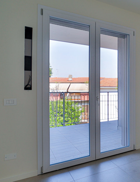 • Infissi in PVC con taglio termico-acustico di fascia alta, montati su monoblocchi di primaria marca, con tapparelle motorizzate in alluminio coibentato.