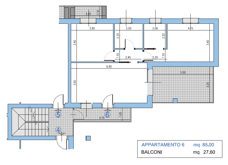 Trilocale con terrazzo e doppi balconi – 85 mq interni + 24 mq di sfoghi esterni