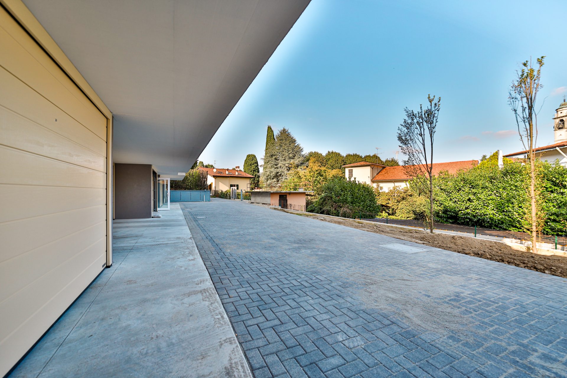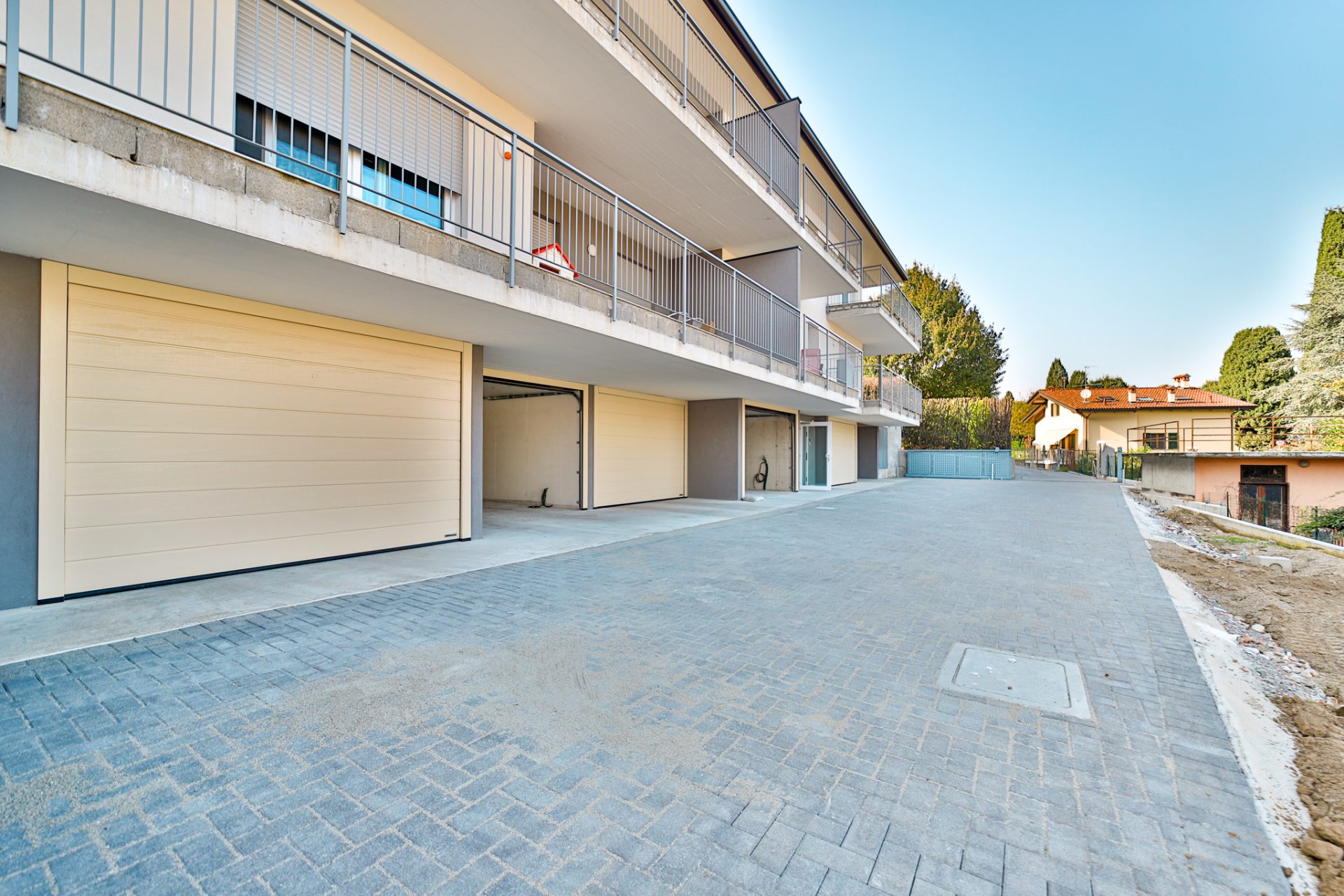 Completa la proprietà un box doppio di 38 m², dotato di portone sezionale motorizzato e collegamento elettrico diretto con l’appartamento.