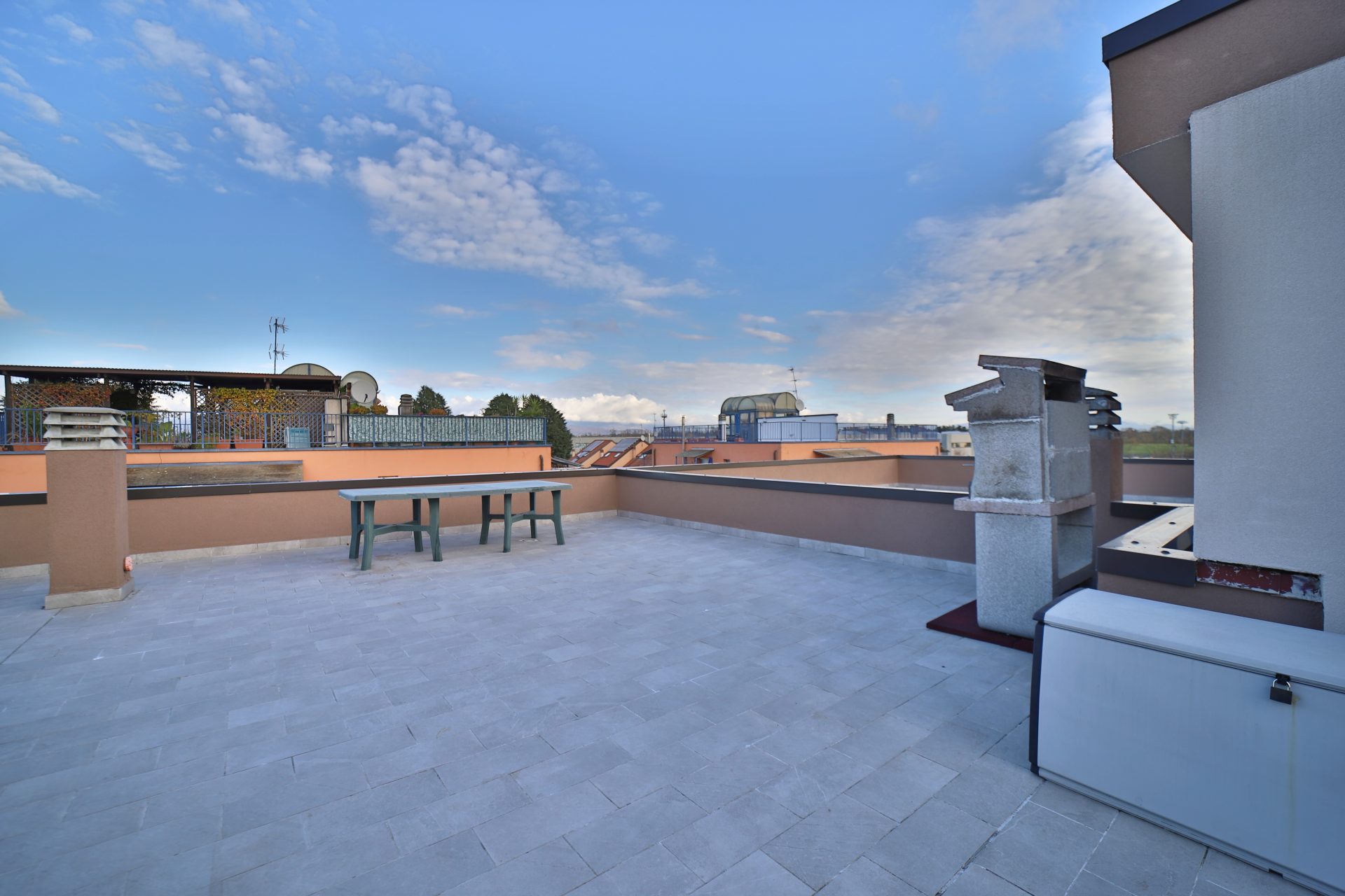 Propone Geom. Filippo Bucci, in contesto ristrutturato con il Superbonus, ottimo bilocale al piano secondo con balcone, sovrastate terrazzo solarium, cantina e box singolo. L’appartamento, di circa 60 mq, è situato al piano secondo senza ascensore ed è così composto: ingresso nel soggiorno con cucina a vista, balconata, lavanderia con caldaia, bagno con doccia in resina e camera matrimoniale; al piano superiore (non collegato direttamente alla casa) troviamo uno splendido terrazzo solarium di circa 60 mq con barbecue in muratura, corrente ed acqua. L’appartamento è stato totalmente ristrutturato nel 2019, mentre la palazzina è stata oggetto di superbonus, pertanto hanno realizzato un cappotto termico esterno ed hanno sostituito serramenti interni e caldaie, che ora sono a condensazione. Climatizzazione già presente. Completa la proprietà una cantina ed il box singolo. Il prezzo è di Euro 138.000. Possibilità di acquisto arredato.