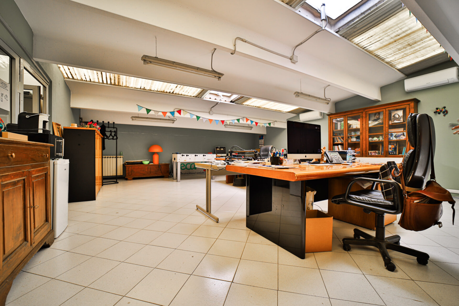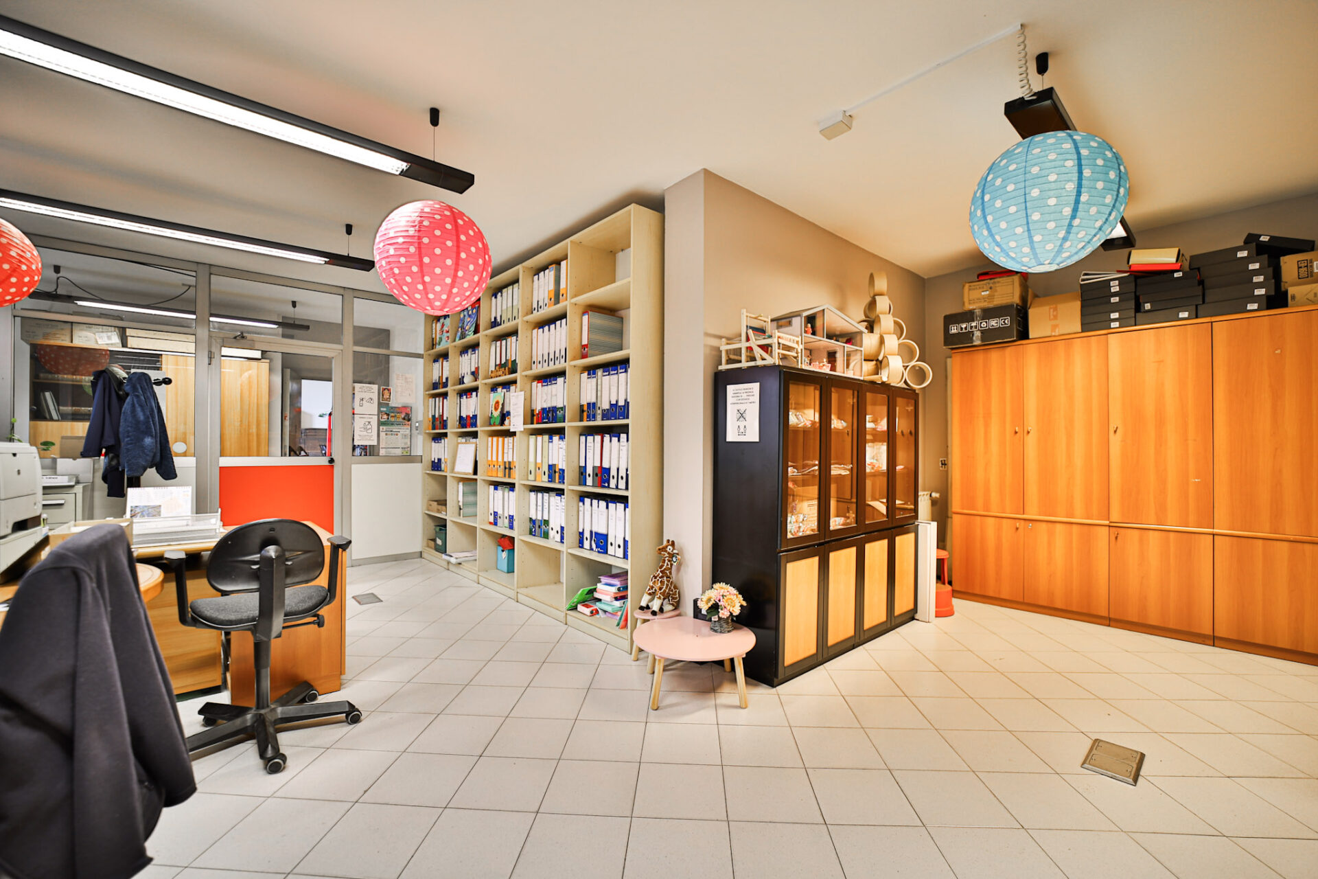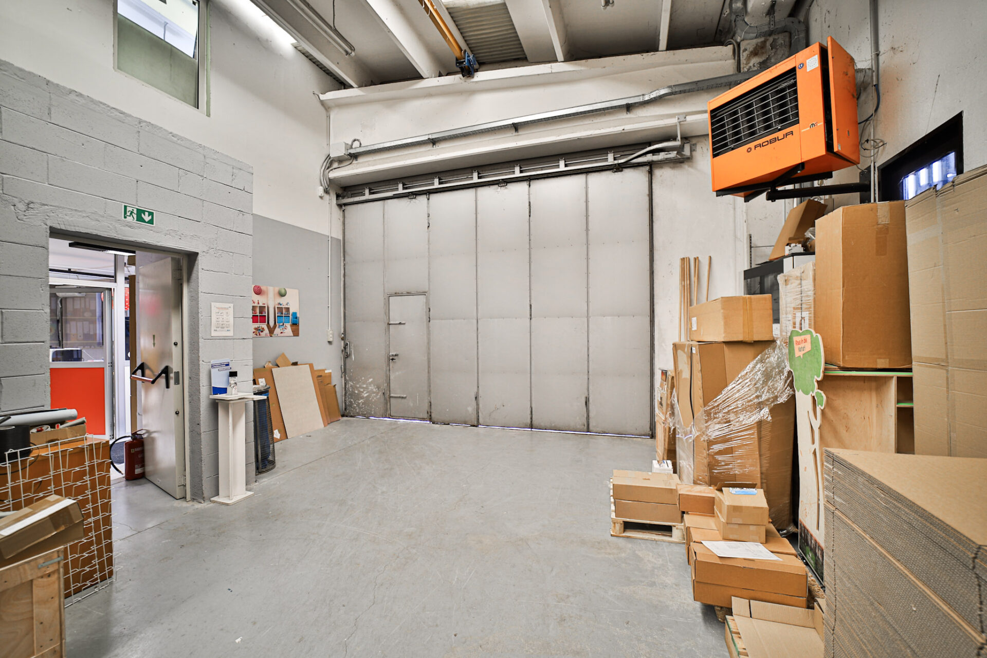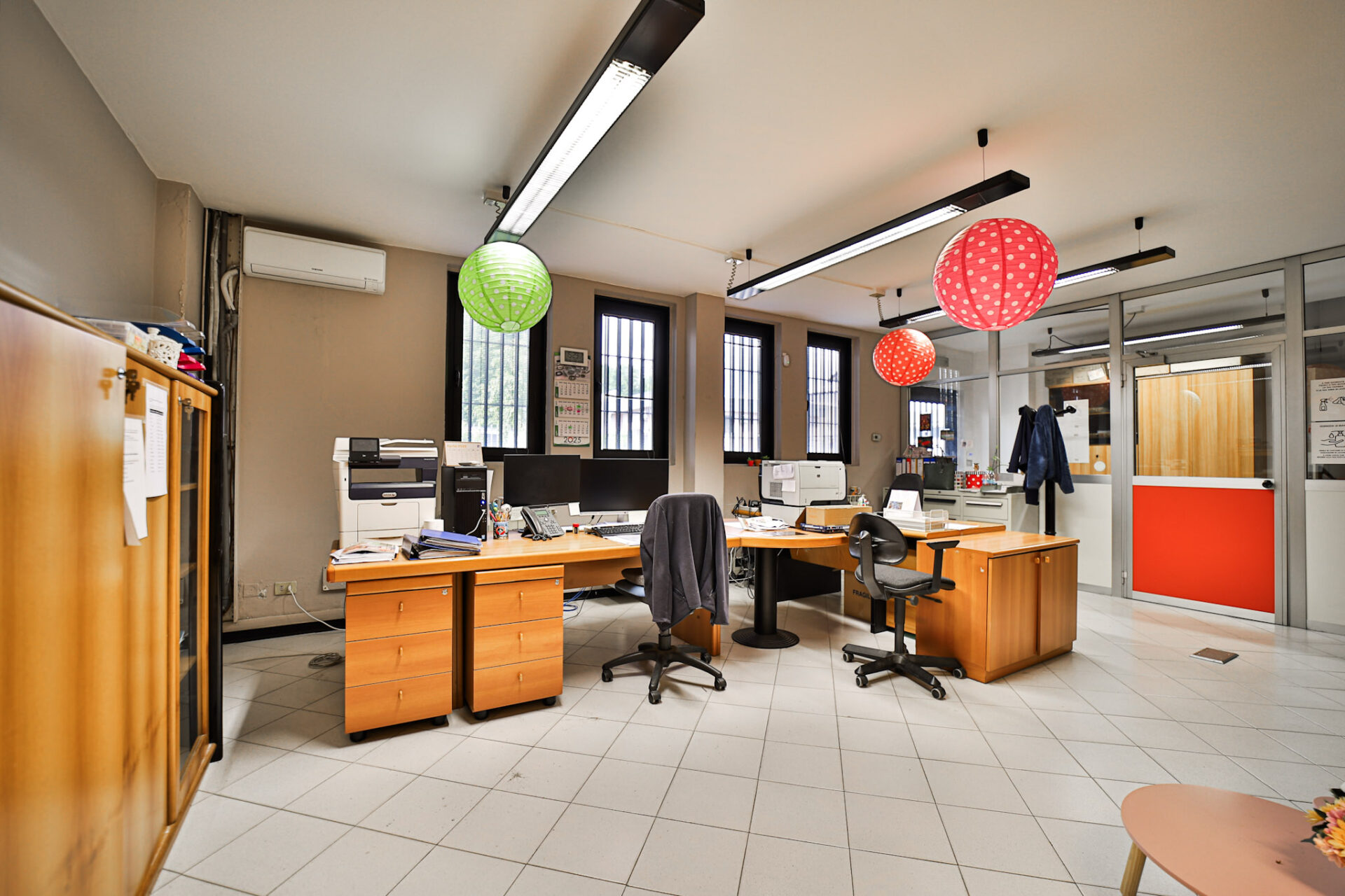 L’immobile si sviluppa al piano terra con un deposito di 273,50 mq dotato di altezza sottotrave pari a 5,90 metri, affiancato da una zona uffici completa di spogliatoio, bagno con doccia e servizio igienico dedicato alla parte direzionale. È presente inoltre un locale archivio, raggiungibile tramite scala interna, mentre l’accesso pedonale separato alla zona uffici garantisce autonomia e riservatezza operativa.