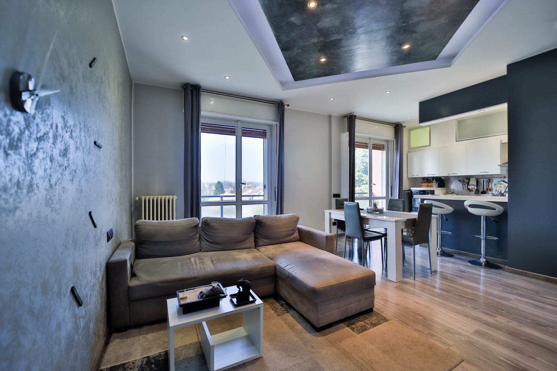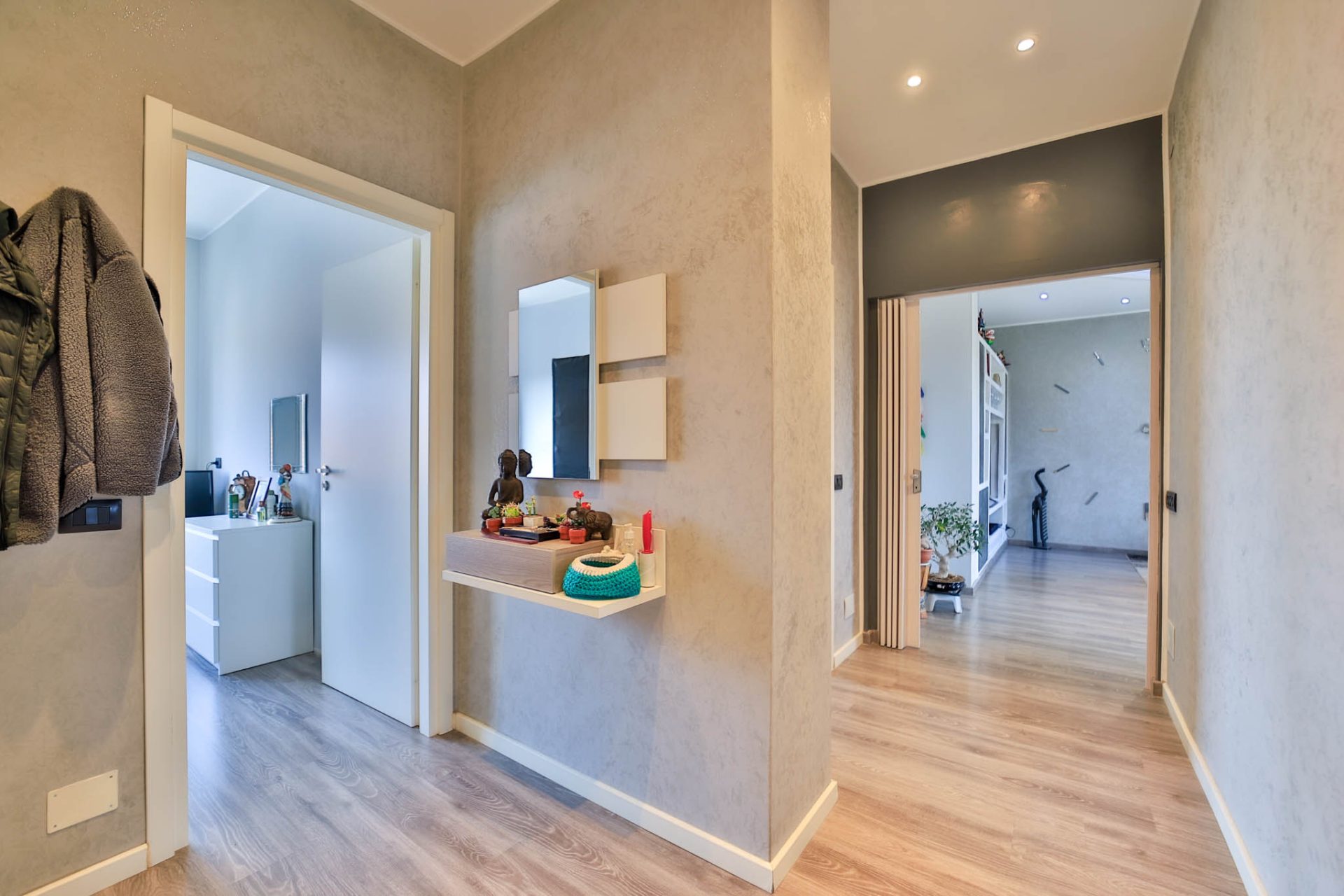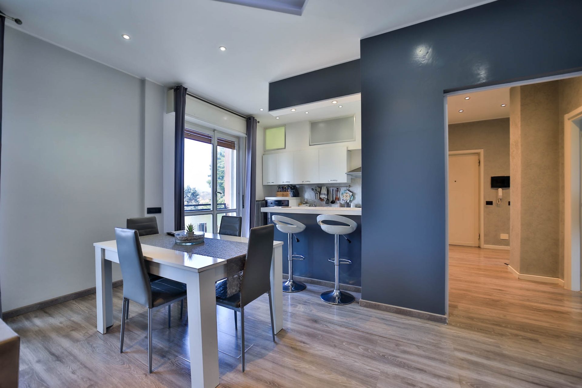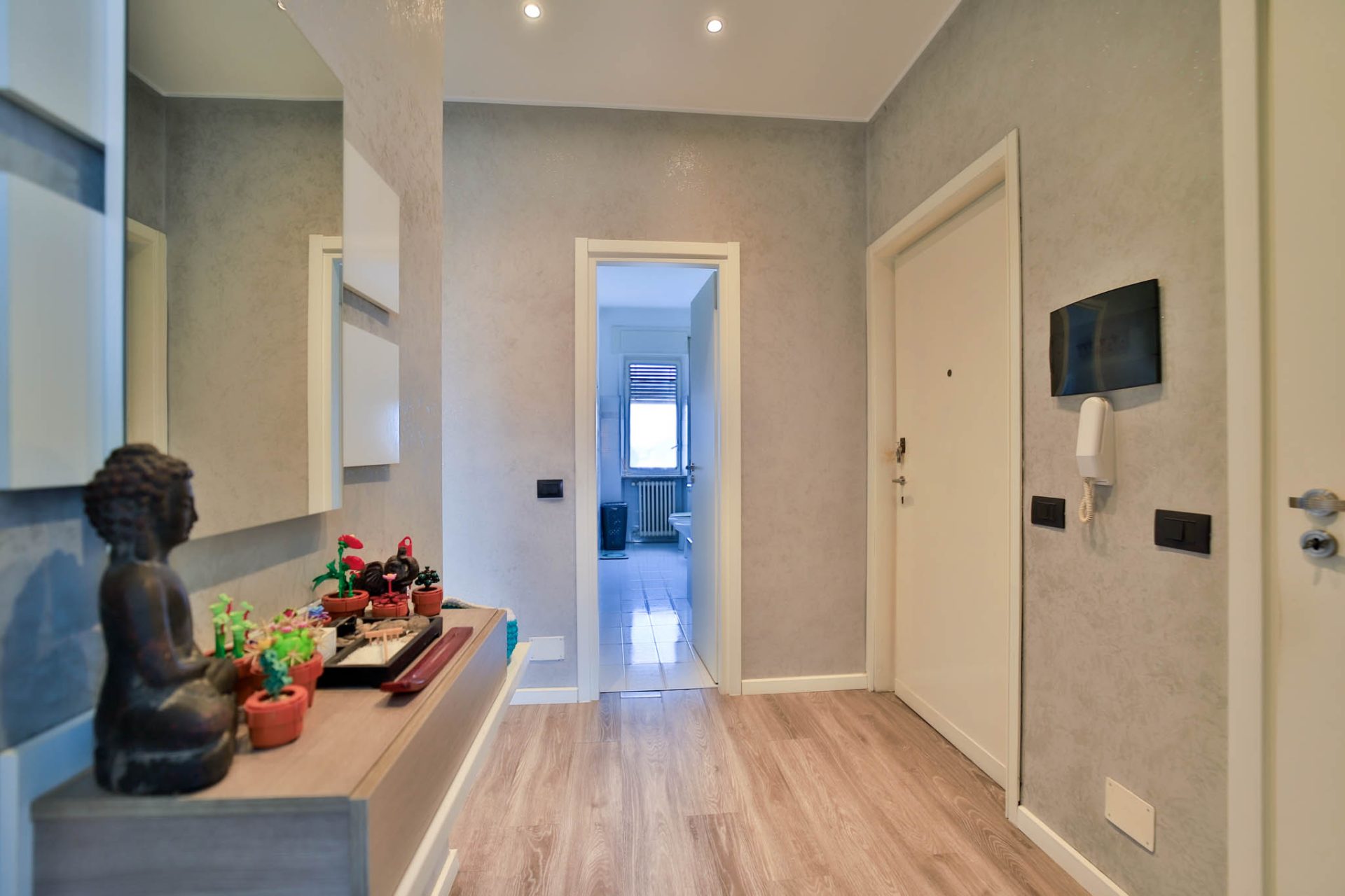 L’ingresso introduce alla zona giorno ampia e luminosa, caratterizzata da un ambiente accogliente con cucina a vista, pensato per vivere al meglio i momenti quotidiani e la convivialità. Da qui si accede al balcone che si sviluppa lungo tutto il fronte ovest dell’abitazione, dal quale si gode di una piacevole vista panoramica, capace di valorizzare ulteriormente la luminosità e l’apertura degli spazi.