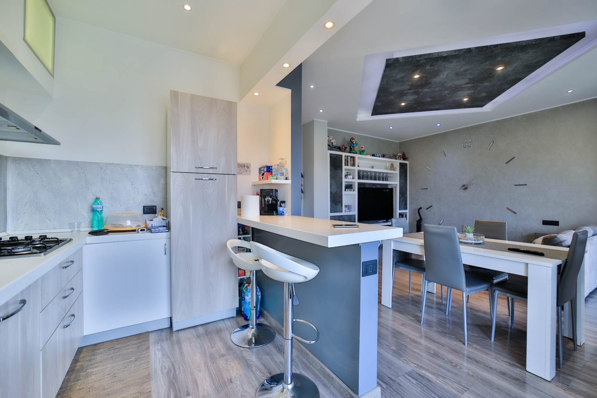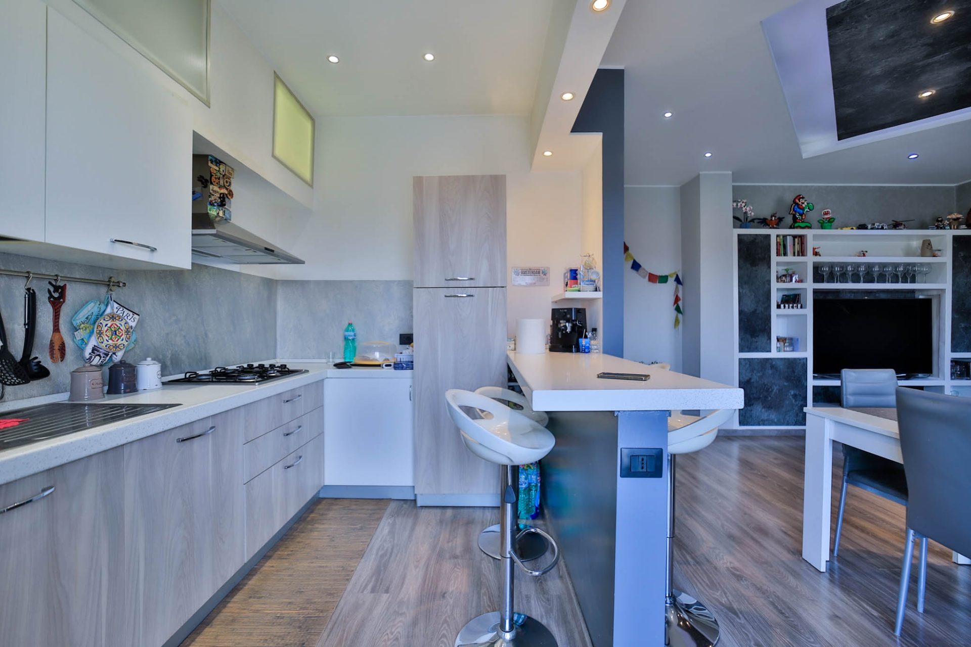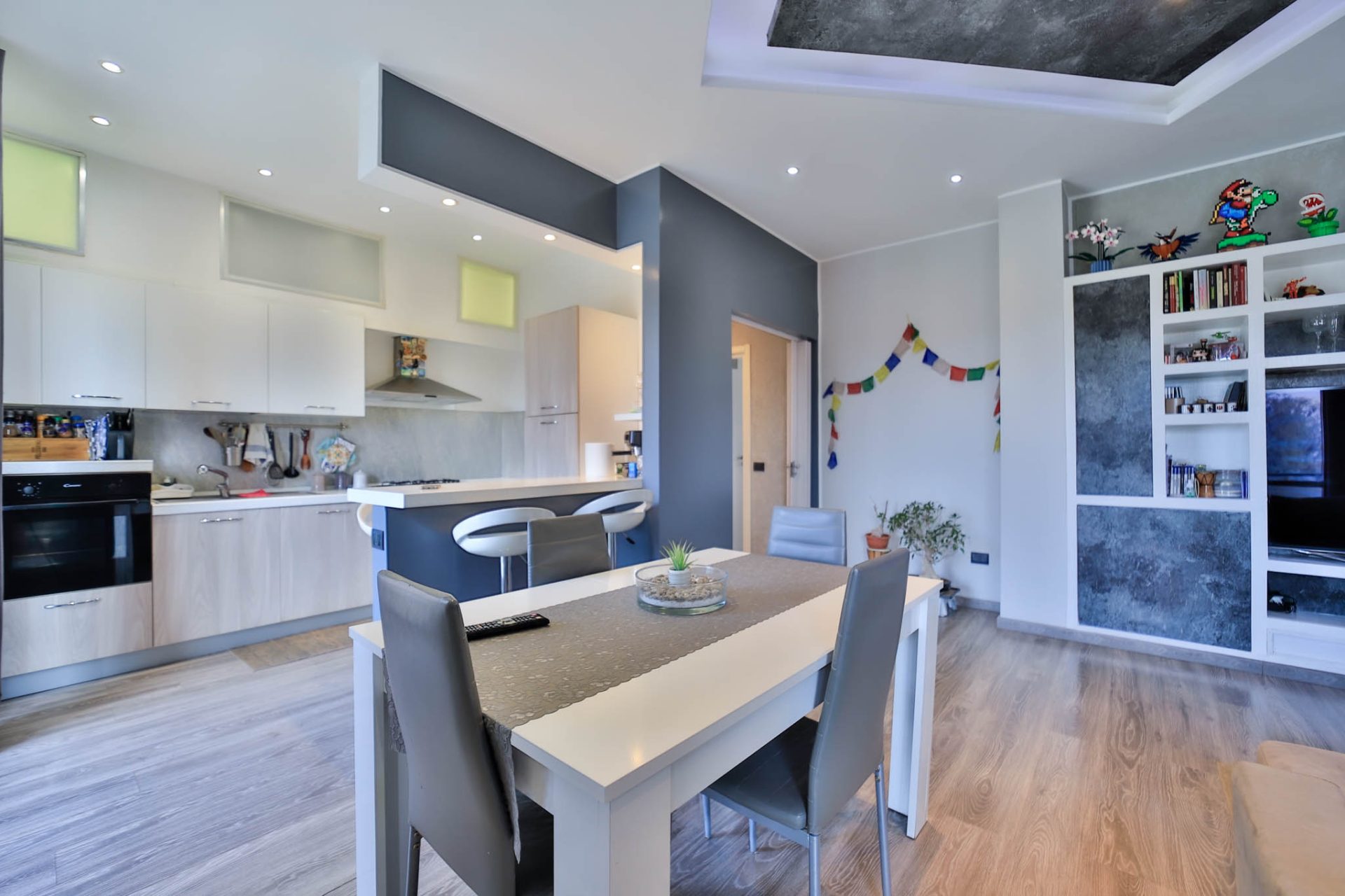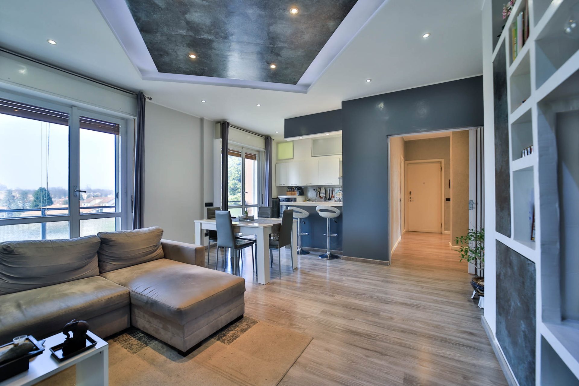 L’ingresso introduce alla zona giorno ampia e luminosa, caratterizzata da un ambiente accogliente con cucina a vista, pensato per vivere al meglio i momenti quotidiani e la convivialità. Da qui si accede al balcone che si sviluppa lungo tutto il fronte ovest dell’abitazione, dal quale si gode di una piacevole vista panoramica, capace di valorizzare ulteriormente la luminosità e l’apertura degli spazi.