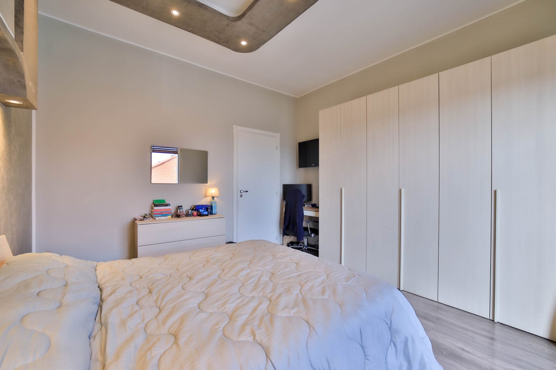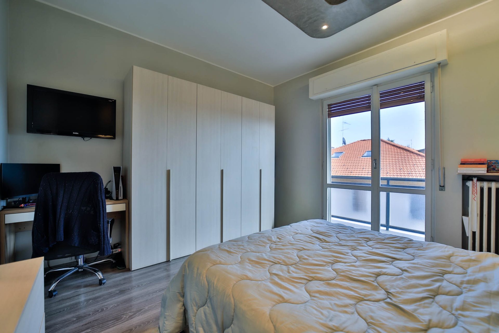 La zona notte ospita due spaziose camere matrimoniali, perfette per garantire comfort e privacy; la camera principale è impreziosita da un balcone privato, ideale come angolo di relax all’aperto. Completa l’abitazione un ampio bagno ben distribuito.