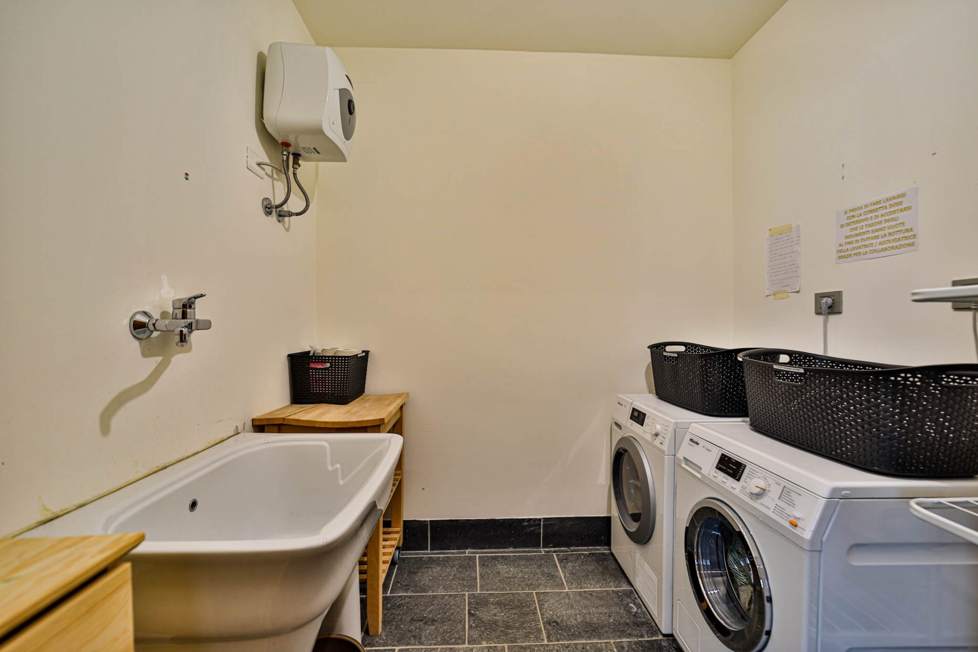 Lavanderia comune con lavatrice e asciugatrici Miele
