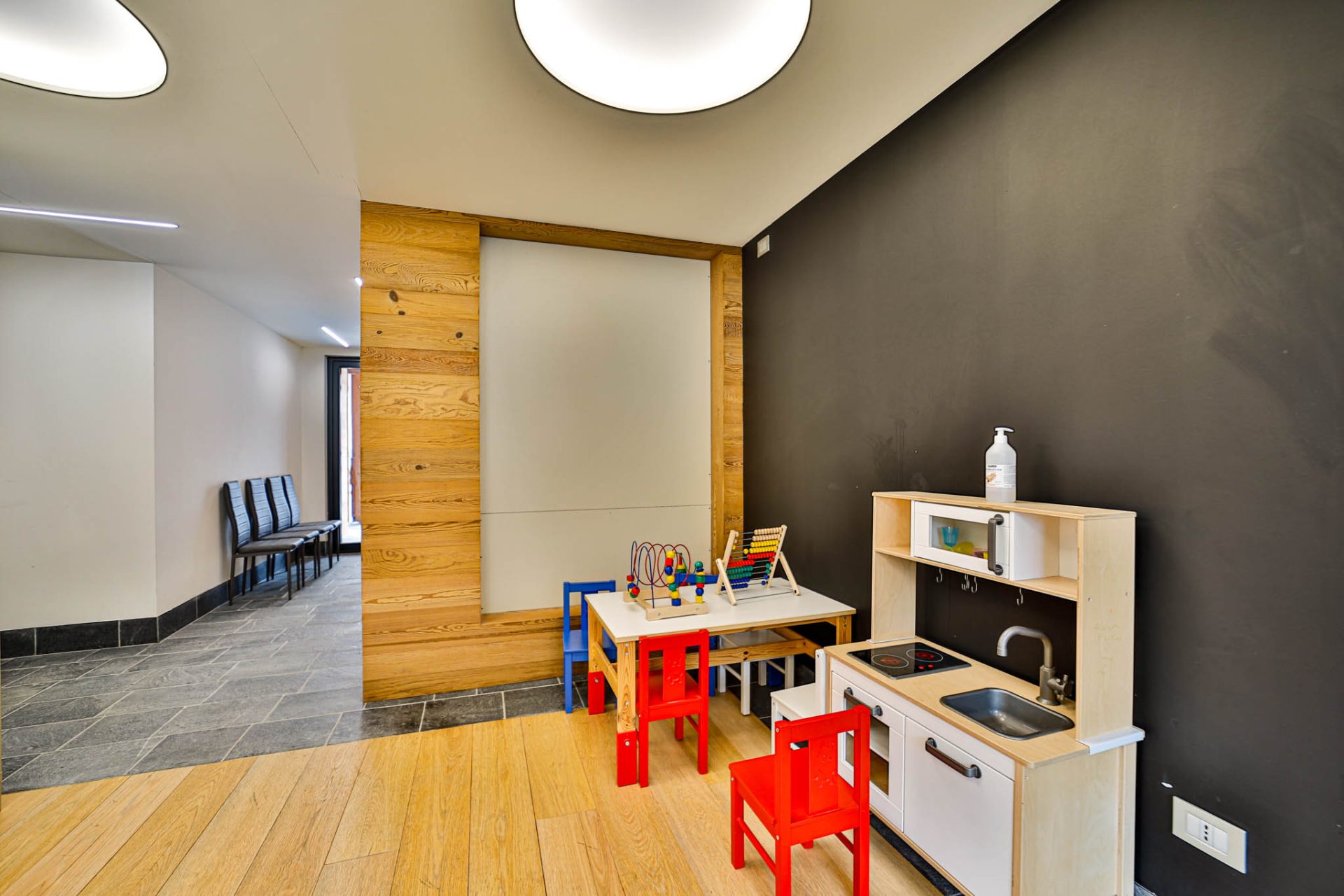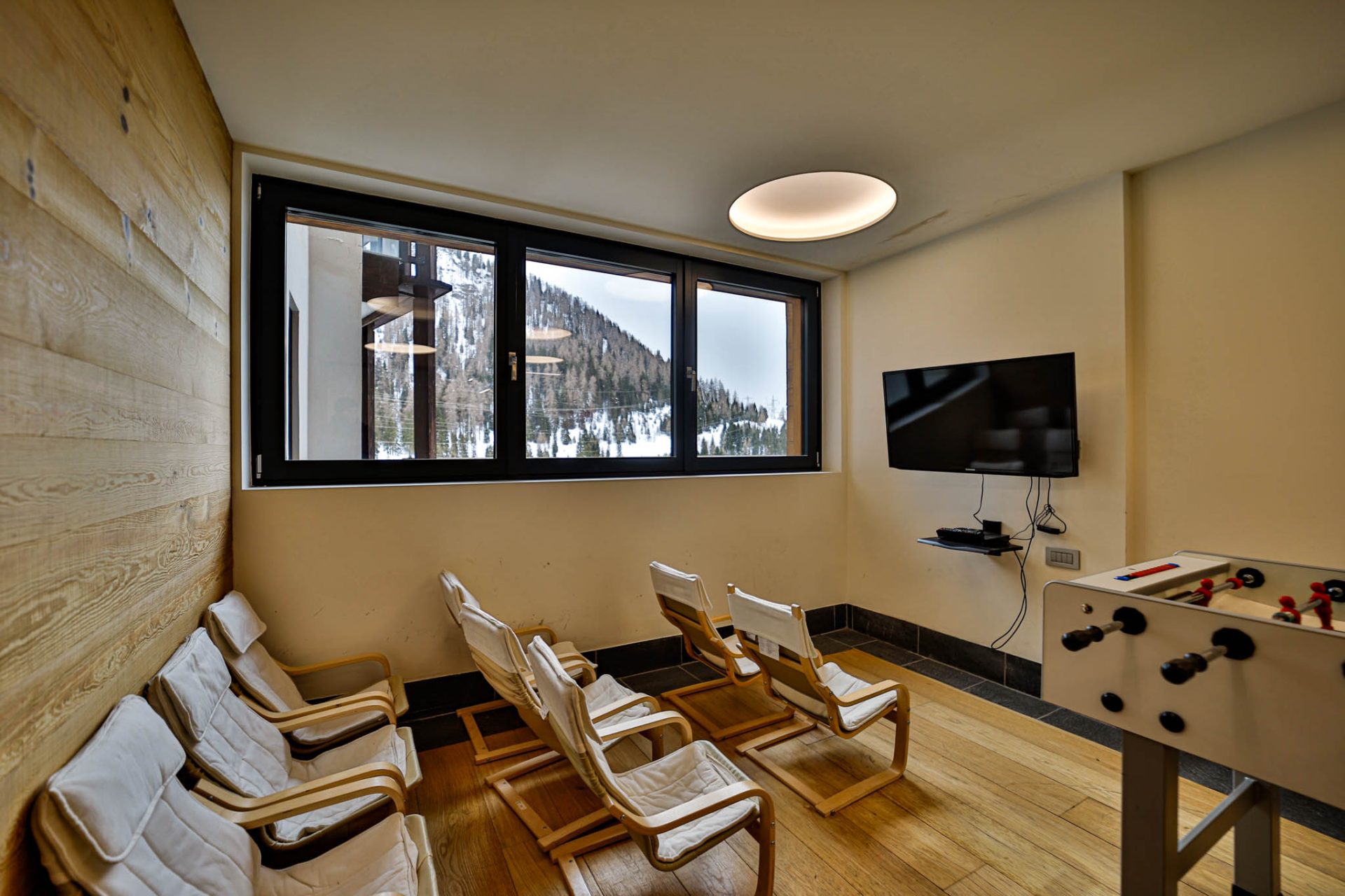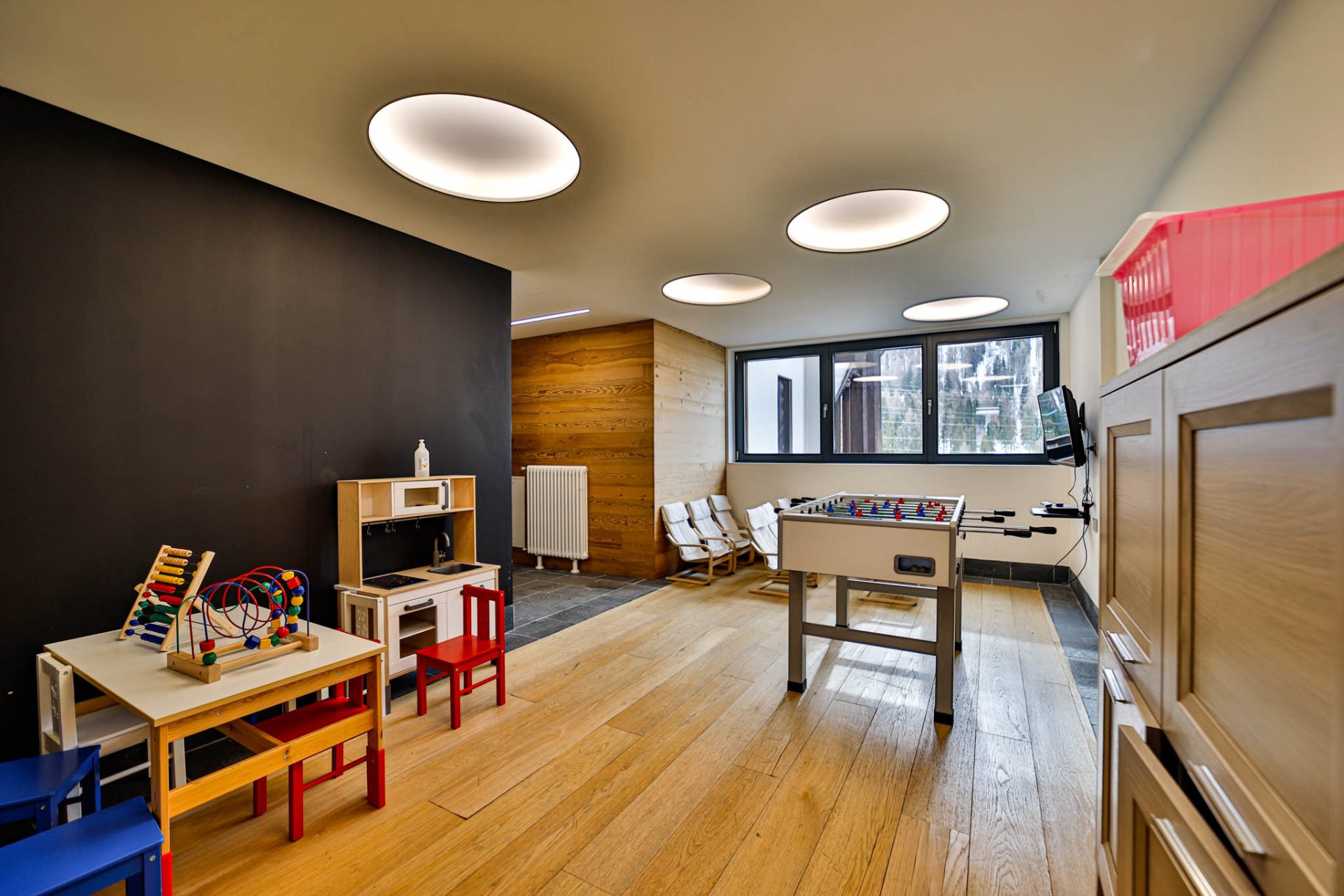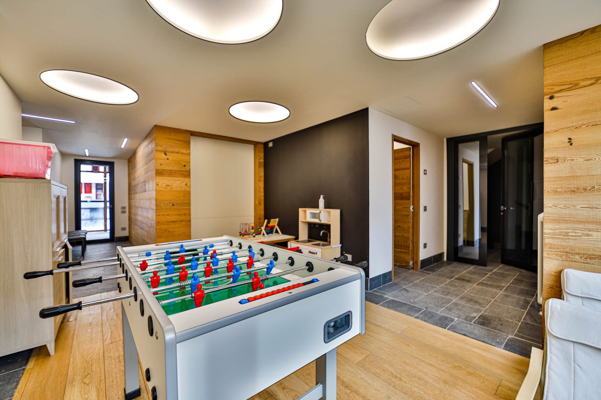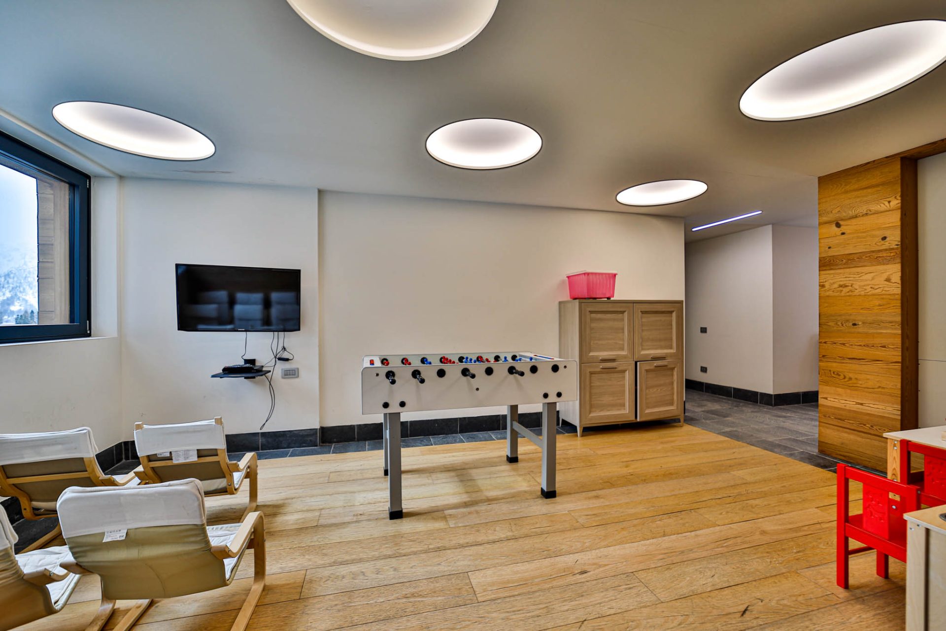 Area giochi con zona TV, film per i più piccoli e biliardino