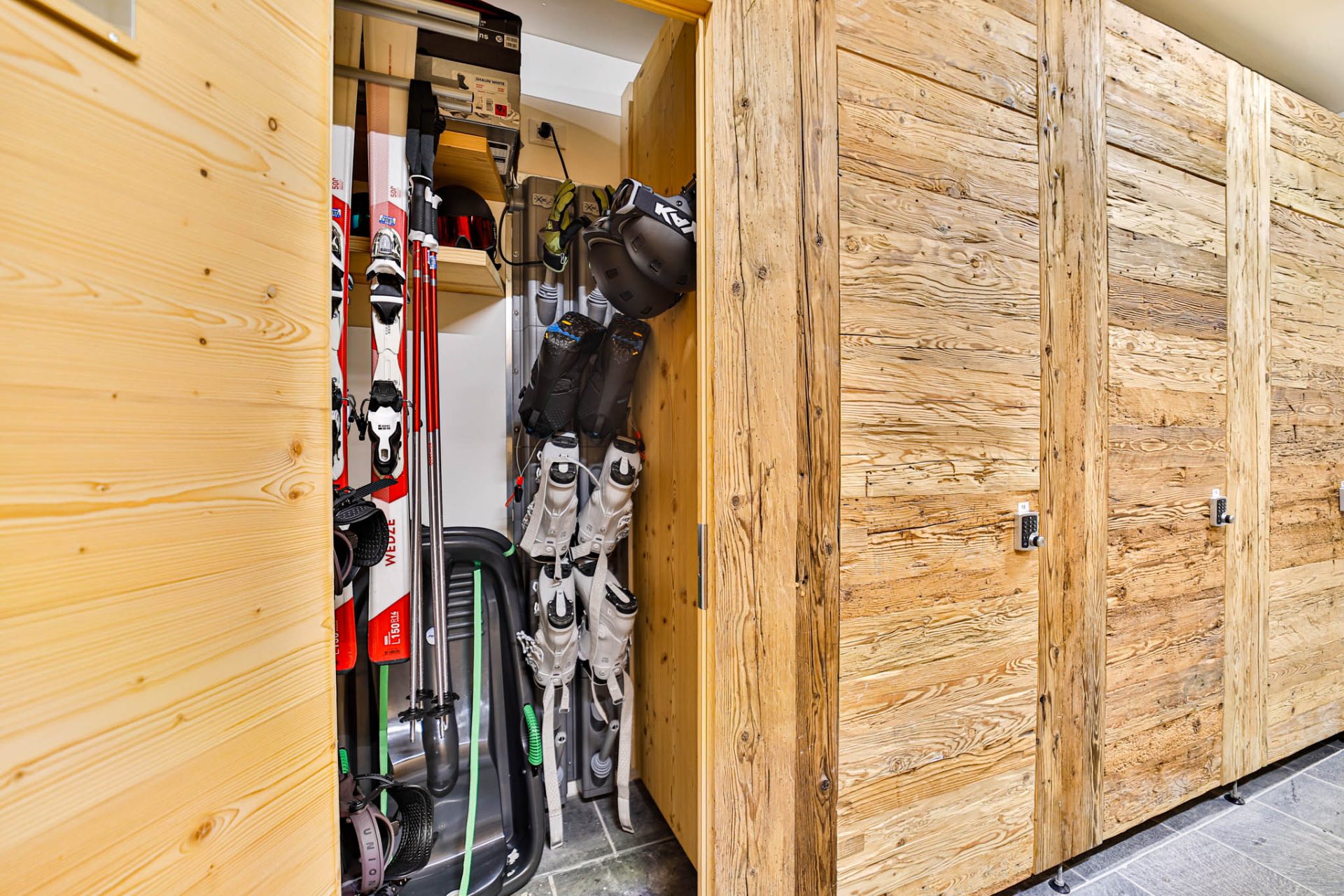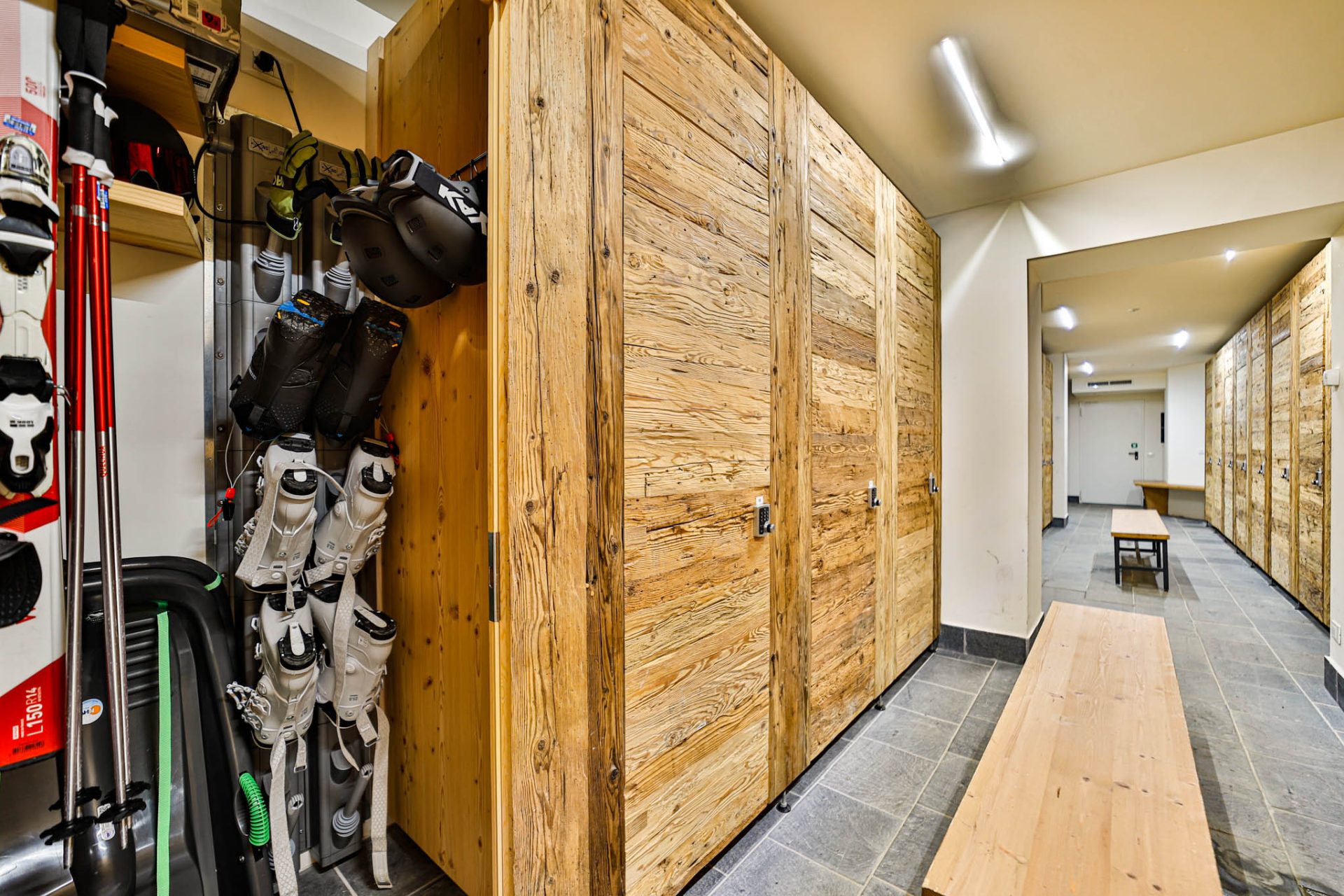 Ski room condominiale con armadio privato dotato di sistema di asciugatura per scarponi e attrezzatura da sci