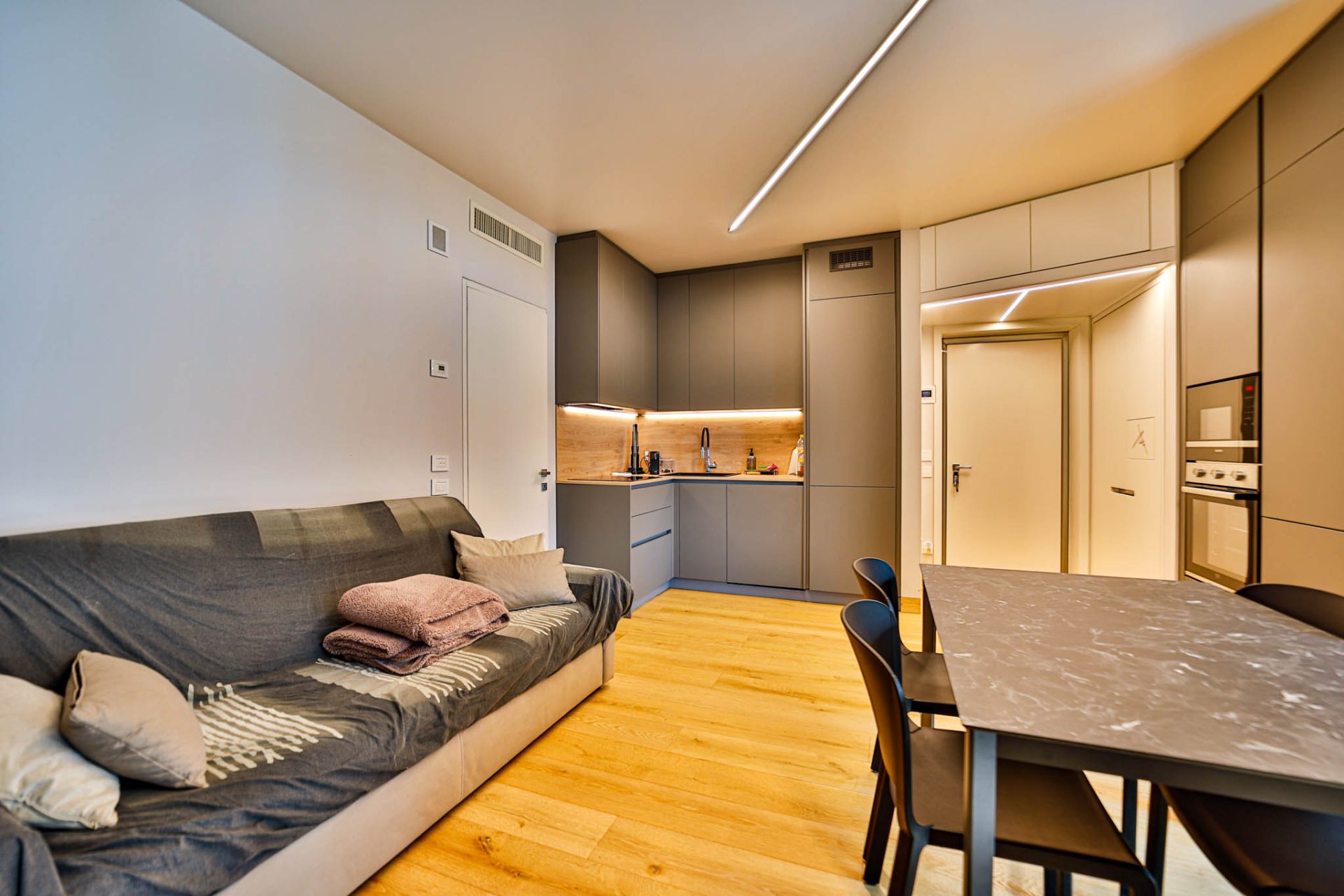 Inserito in una palazzina costruita nel 2014 secondo i più elevati standard qualitativi, l’appartamento è stato personalizzato internamente con finiture di pregio ed è stato messo in uso solamente nel 2024: si presenta oggi in condizioni pari al nuovo.