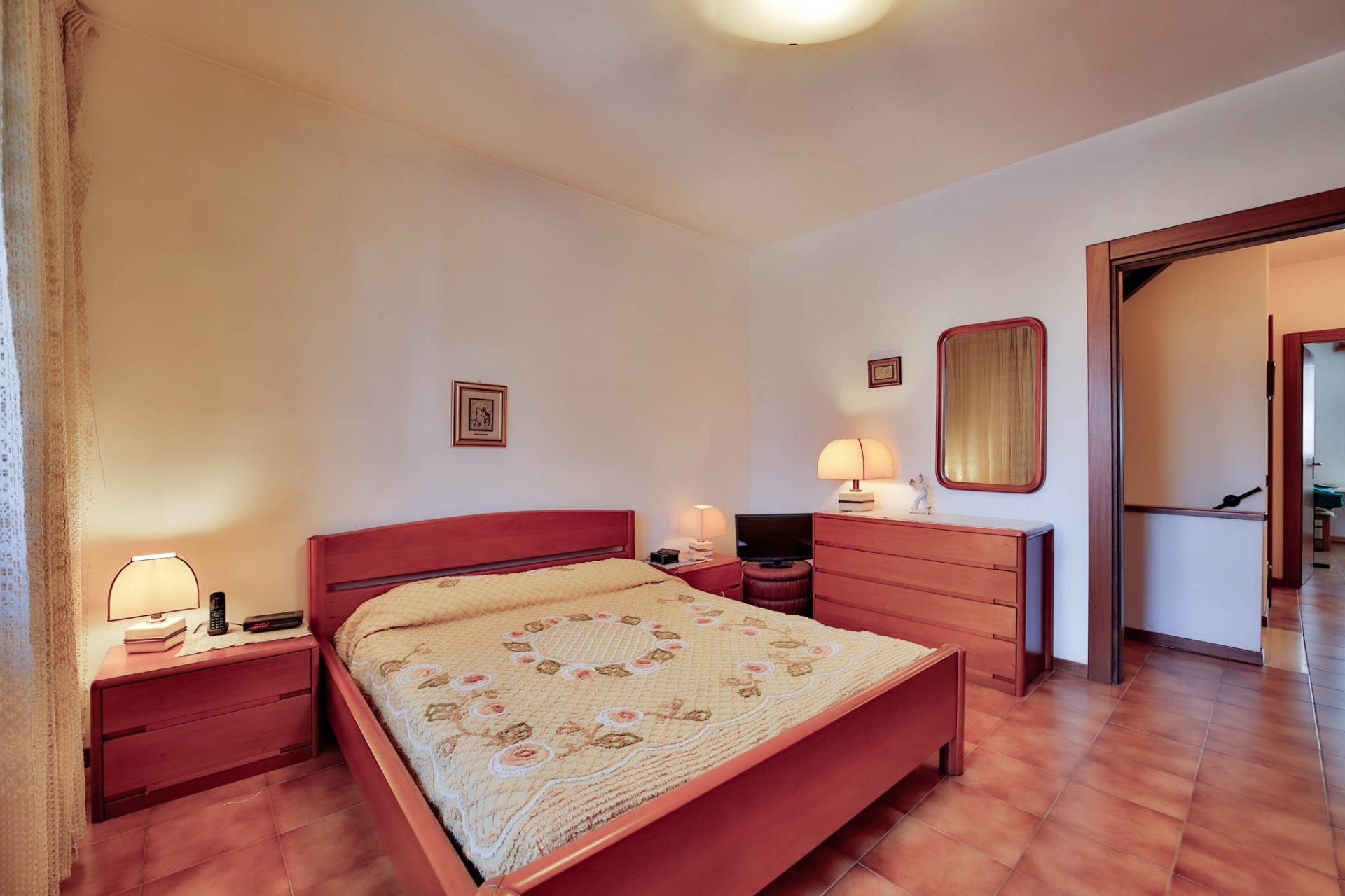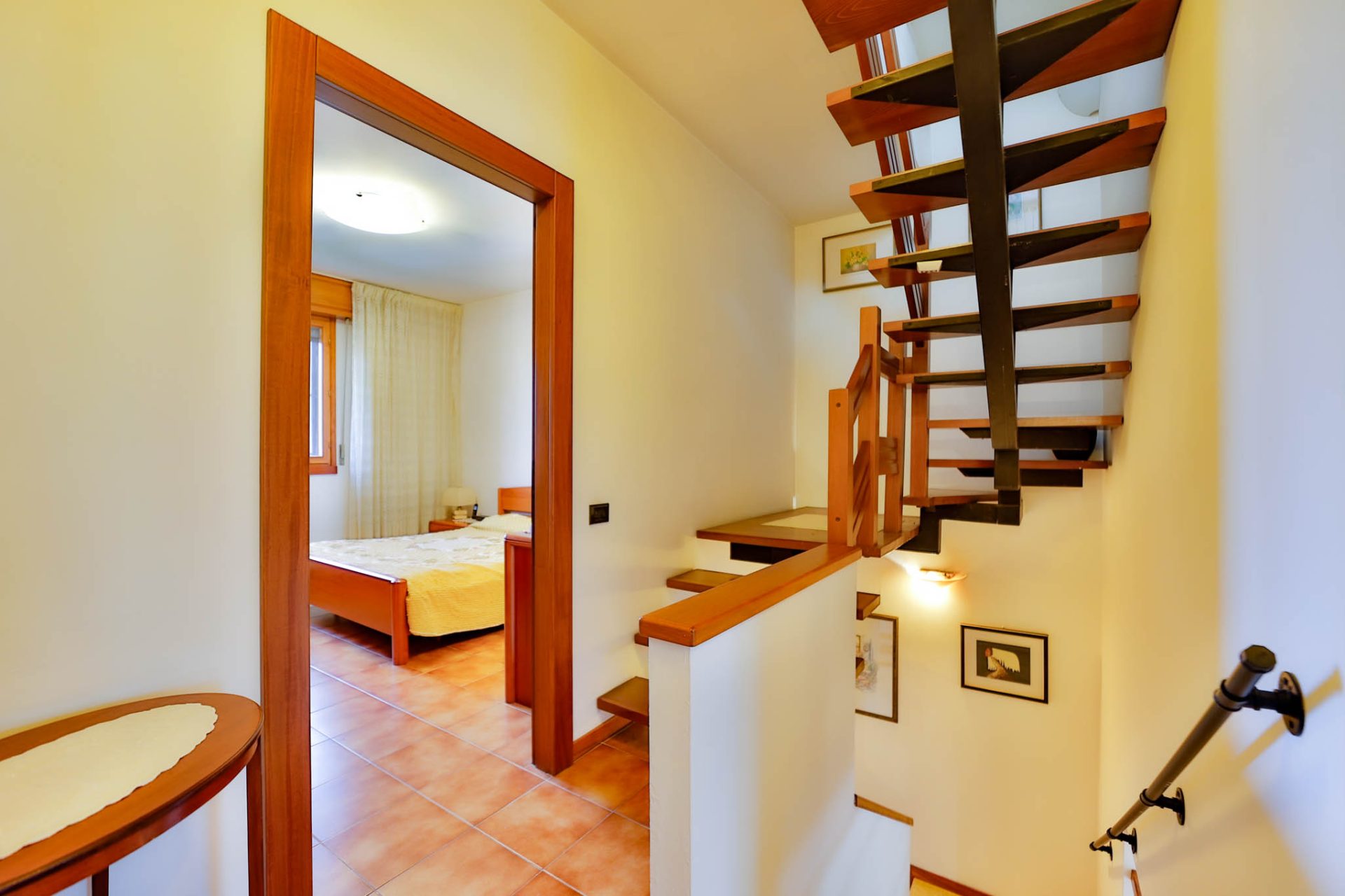 Salendo la scala interna si raggiunge la zona notte, ben distribuita ed ariosa.