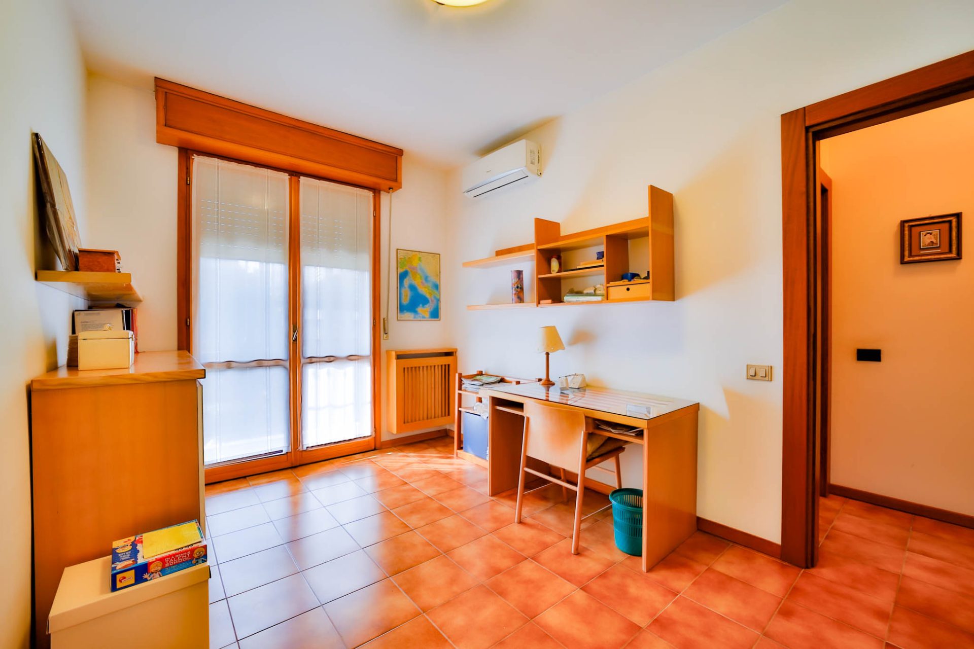 È uno spazio versatile, facilmente divisibile in due ulteriori stanze: può trasformarsi in una suite privata, in uno studio professionale o in un’area dedicata al tempo libero.