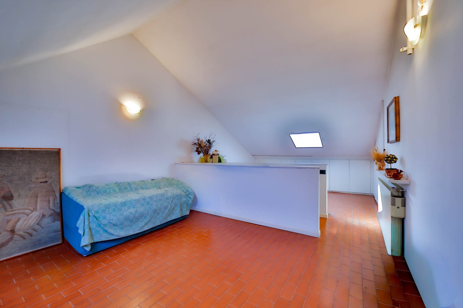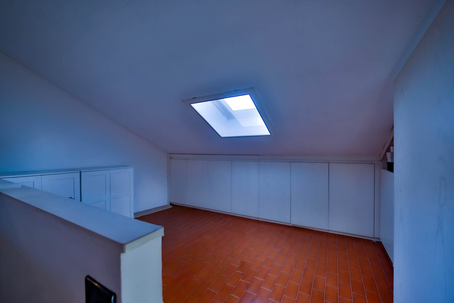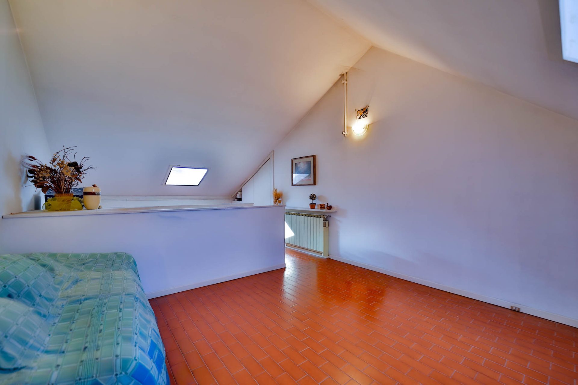 Il piano mansardato oggi si presenta come un unico grande ambiente, oltre bagno di servizio.