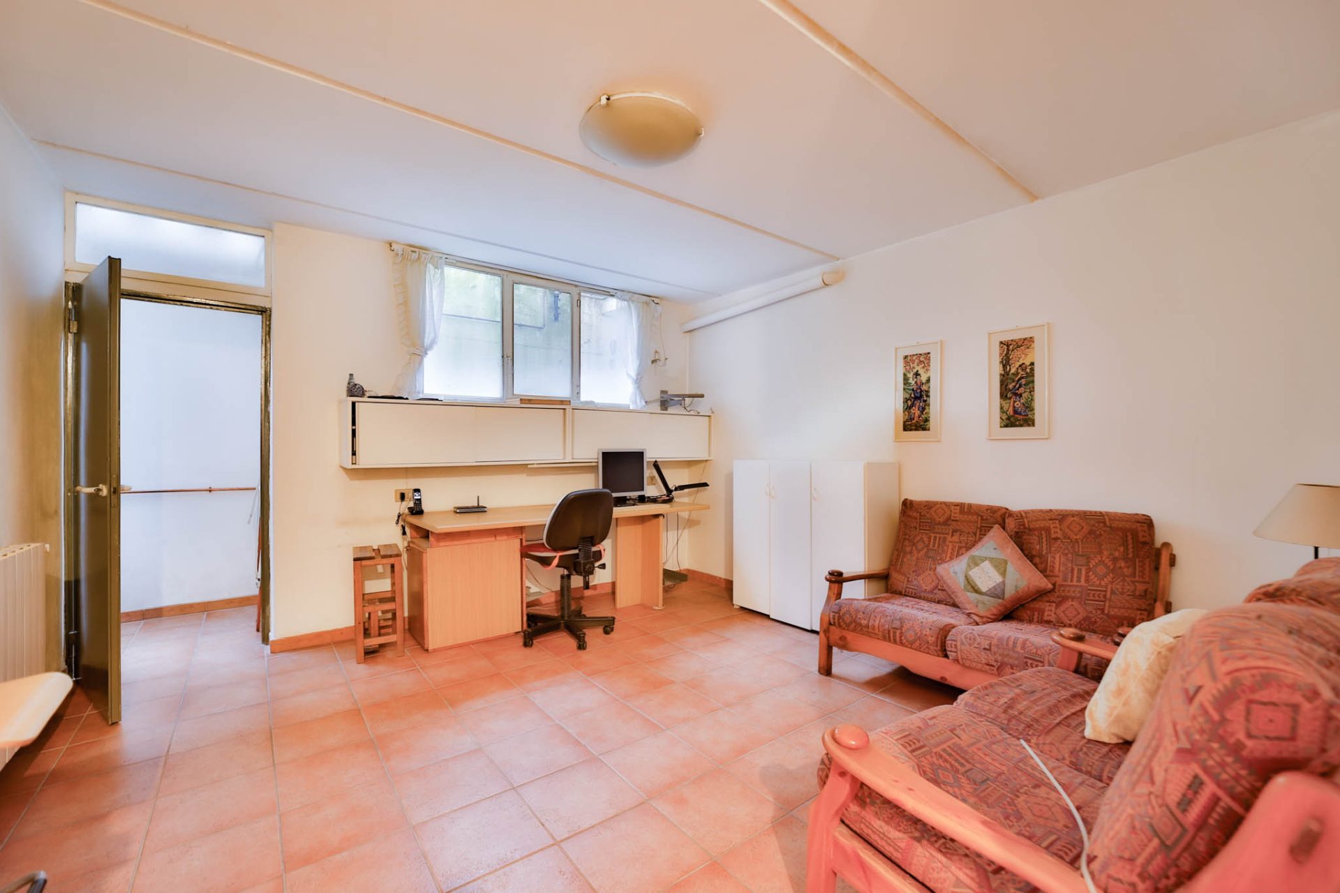 Il piano interrato ospita una taverna accogliente, perfetta per momenti conviviali o hobby personali, oltre a un locale lavanderia, un locale caldaia e un pratico sottoscala ad uso ripostiglio.