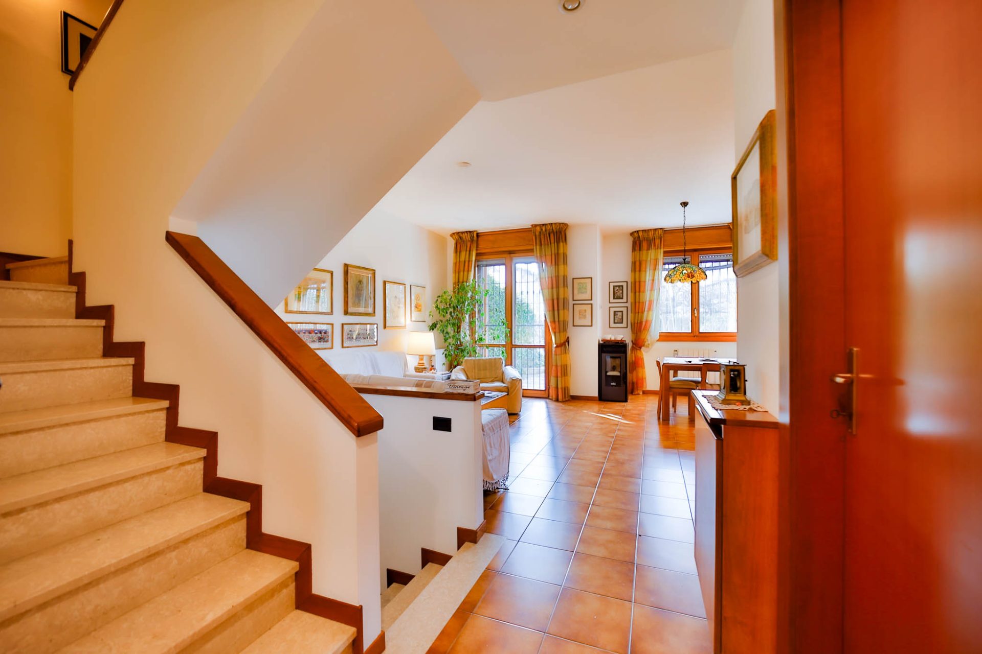 infissi in legno con doppi vetri restaurati nel 2022, inferriate, zanzariere, tende da sole motorizzate, caldaia sostituita nel 2016, climatizzazione installata nel 2019 e impianto fotovoltaico da 3 kW del 2012.