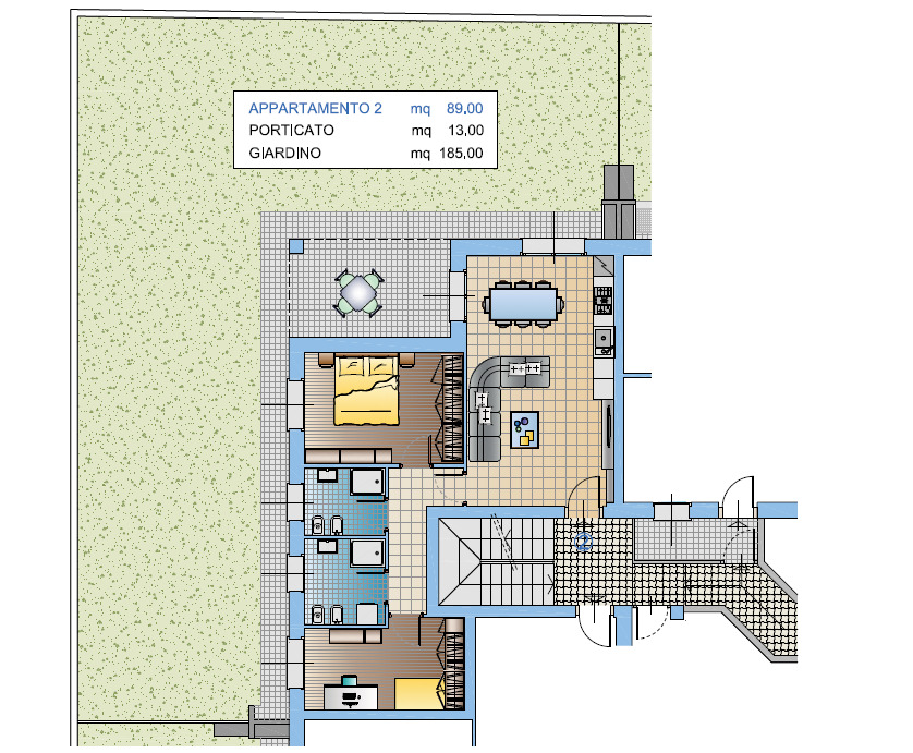 Trilocale con ampio giardino privato – 89 mq interni + 185 mq di verde esclusivo