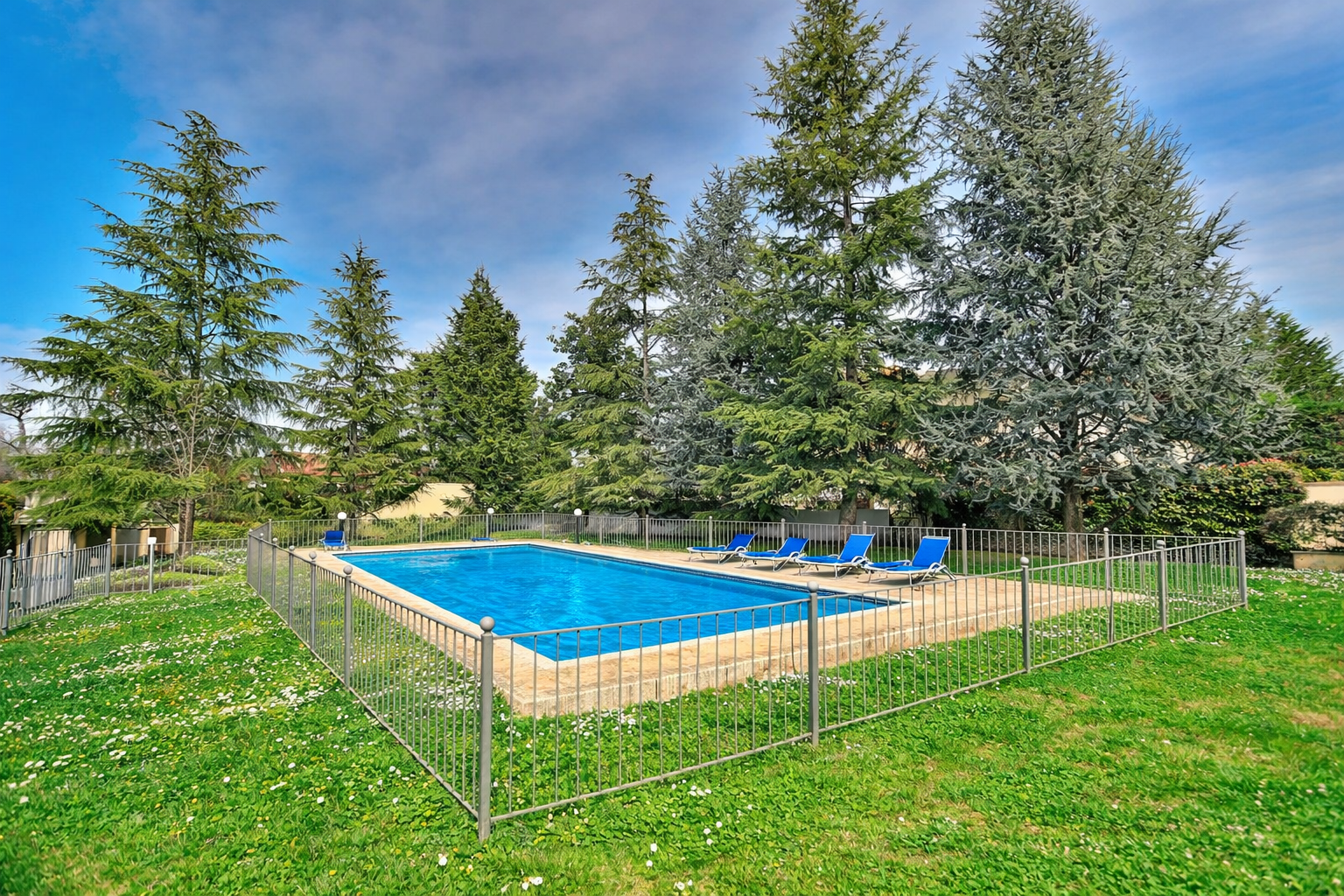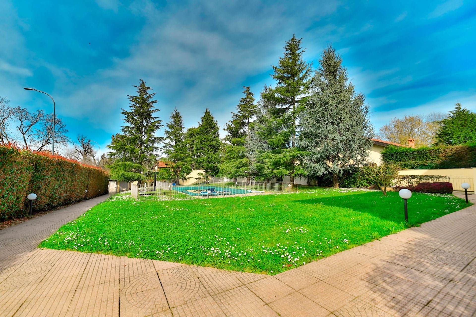 Il complesso, caratterizzato da poche unità abitative, conserva il fascino dell’architettura d’epoca e offre ai residenti il privilegio di vivere circondati da un ampio parco condominiale, impreziosito da piscina ad uso esclusivo dei condomini, ideale per momenti di relax e convivialità immersi nel verde.