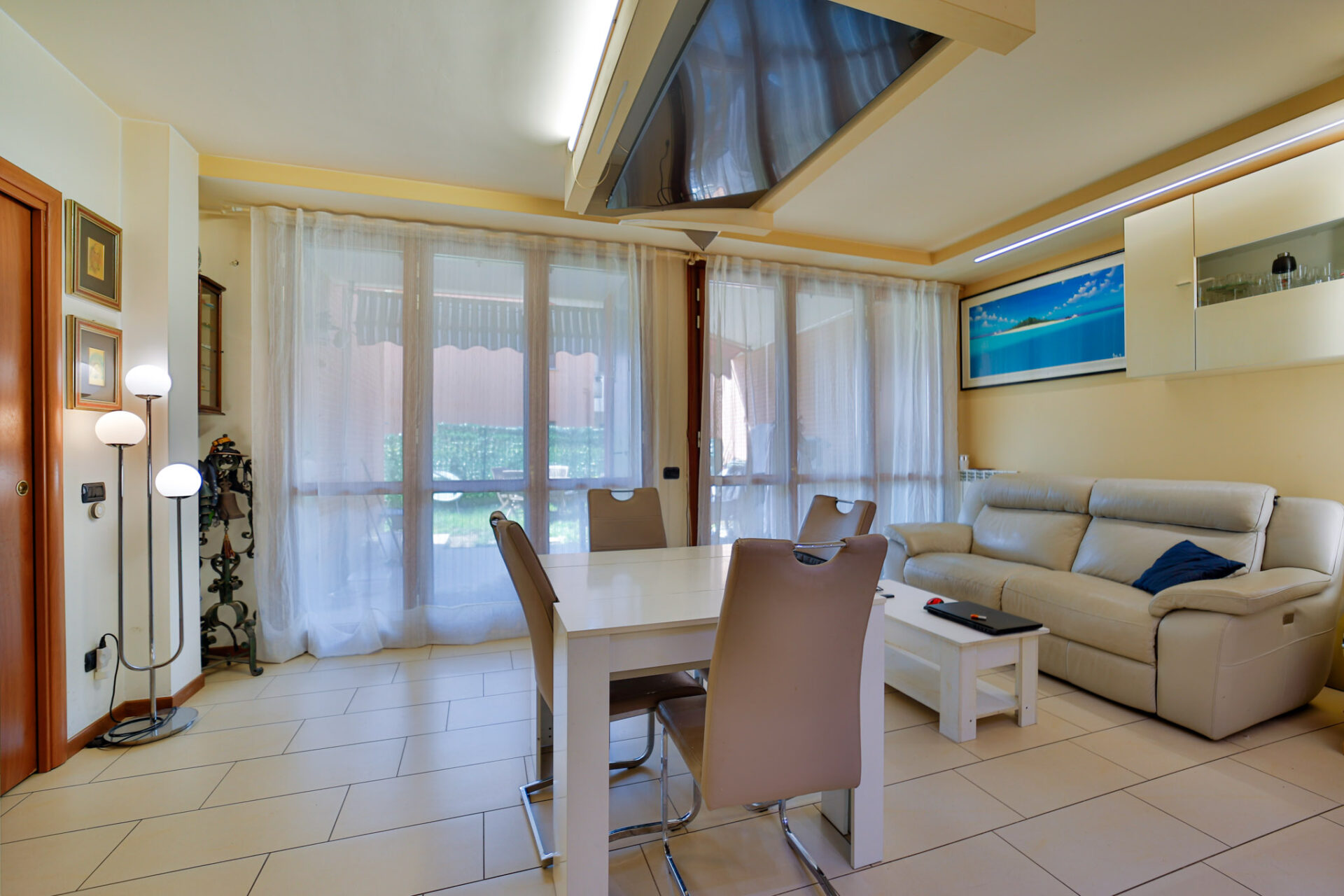 L’appartamento, di generosa metratura (97,00mq), si distingue per spazi pensati per il comfort e la qualità della vita. L’ampia zona giorno con cucina a vista si apre su un portico coperto di 20,00mq e su un giardino privato di 70,00mq: un angolo verde riservato e silenzioso, perfetto per vivere momenti di relax o convivialità all’aperto.