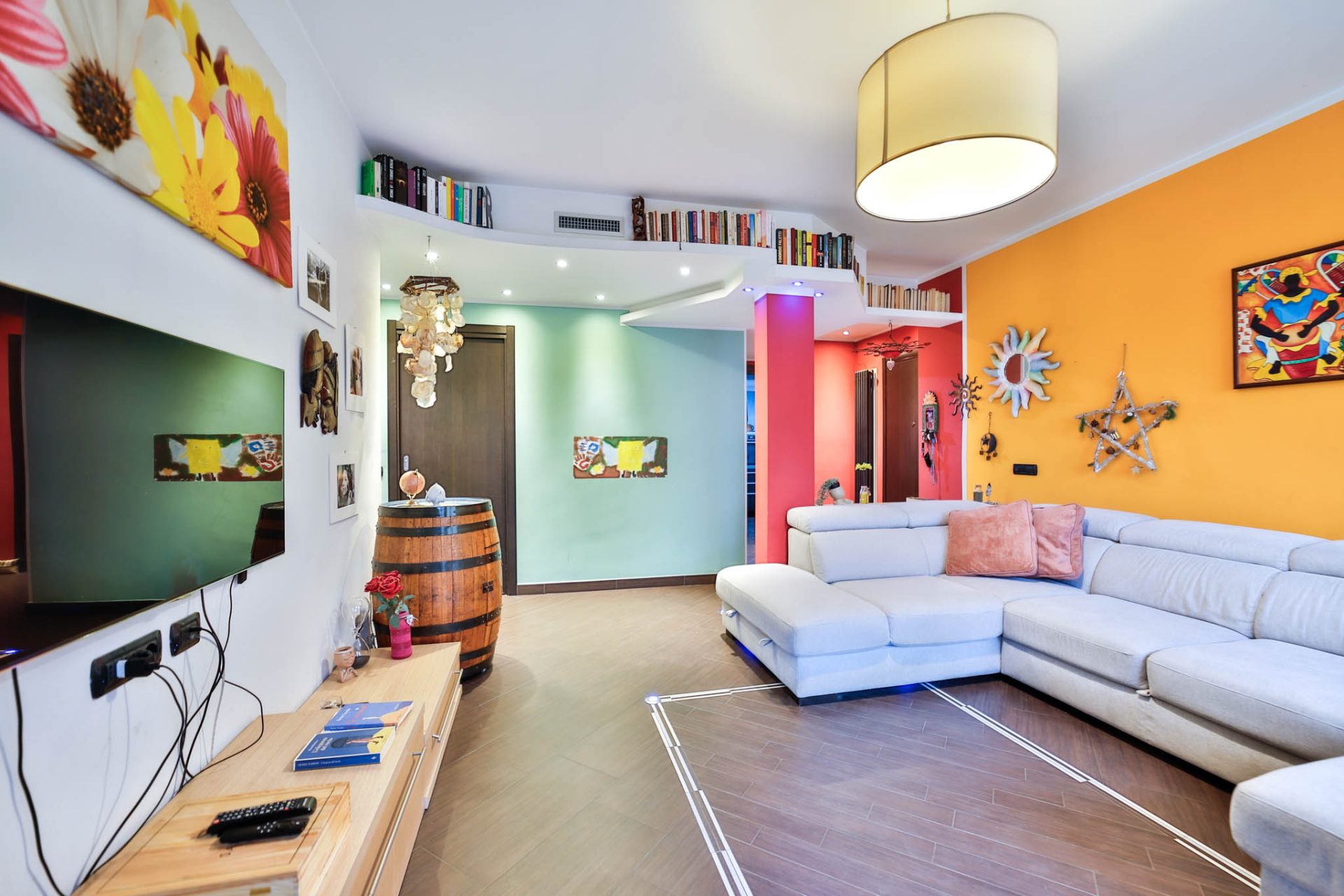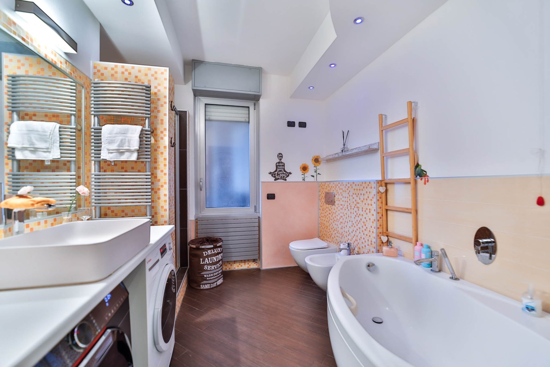 L’ingresso si apre su un ampio soggiorno, accogliente e ben illuminato, con accesso al terrazzo, ideale per momenti di relax all’aperto. La cucina è abitabile, separata e dotata di balcone, perfetta per la vita quotidiana. Completano la zona giorno un comodo ripostiglio e un grande bagno, elegante e funzionale, dotato sia di vasca idromassaggio sia di doccia.