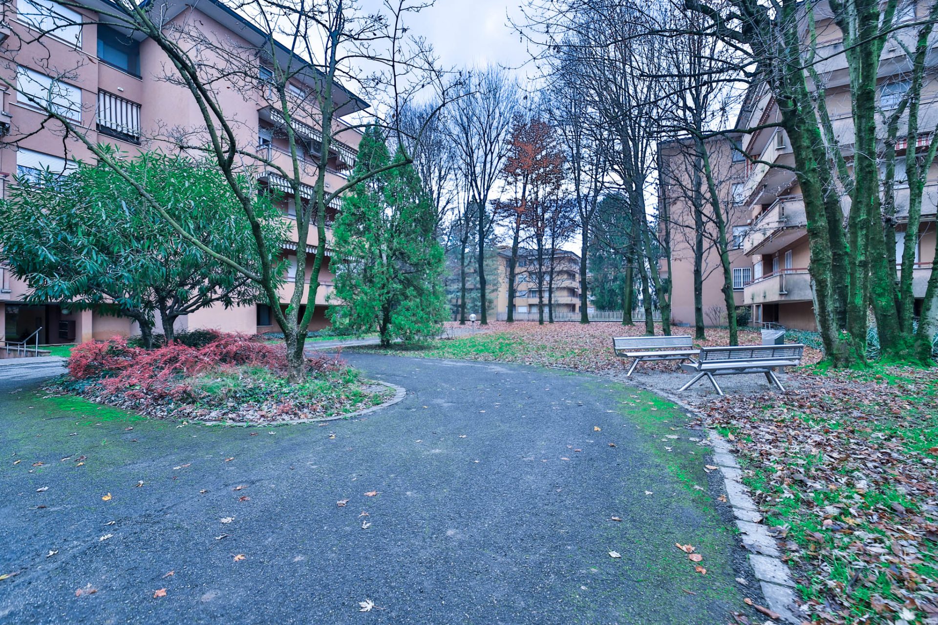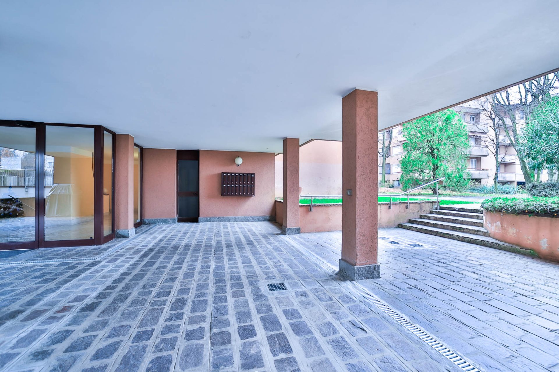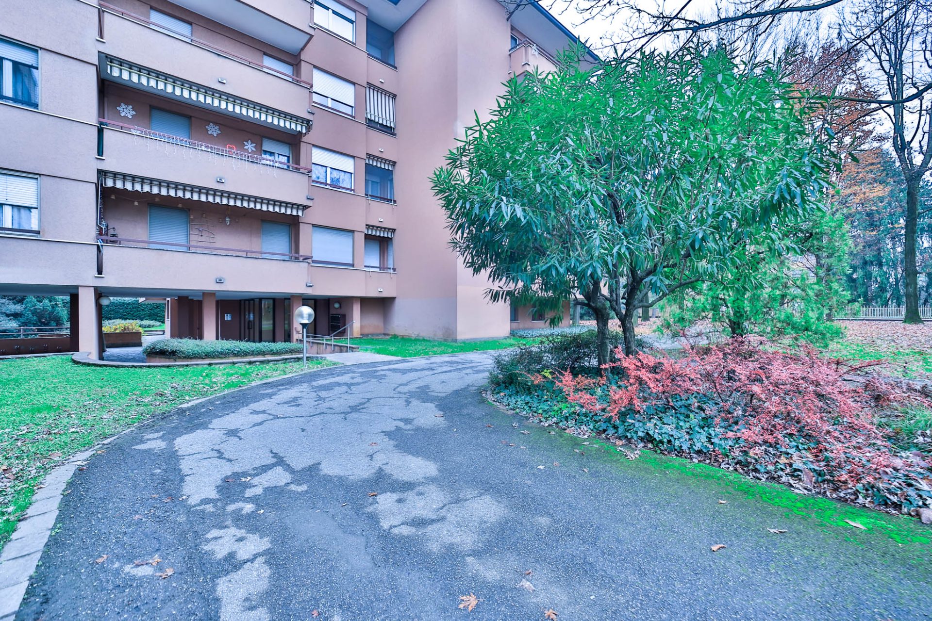 Il complesso, composto da due palazzine edificate negli anni ‘80, è avvolto da una curata cornice verde di giardino condominiale, capace di garantire privacy e una piacevole sensazione di quiete, pur rimanendo vicino ai servizi del paese.