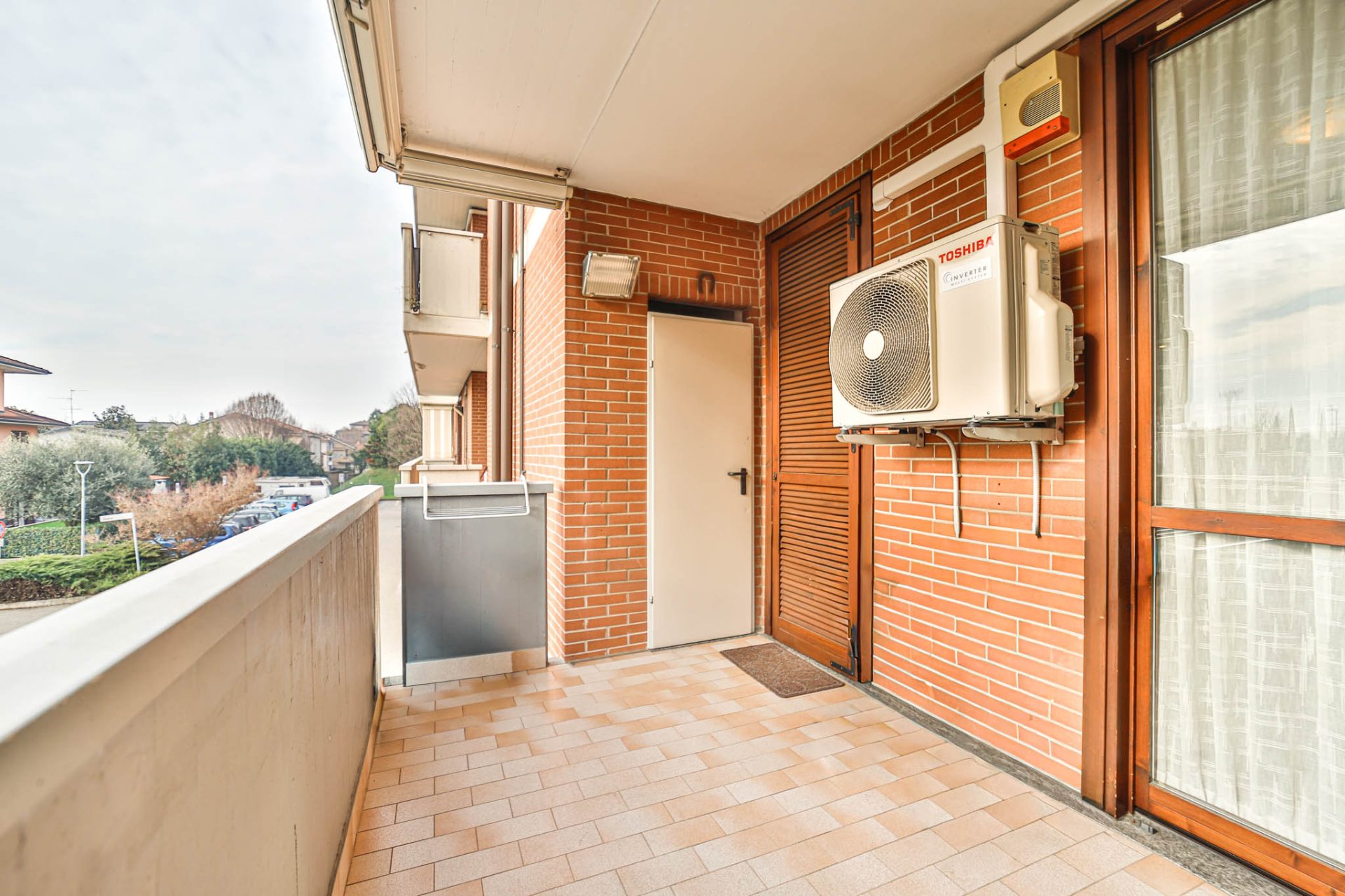 Sul secondo balcone è presente un comodo ripostiglio esterno, che accoglie la caldaia a condensazione sostituita nel 2022 e il motore dell’impianto di climatizzazione, già installato e presente in tutti gli ambienti della casa.