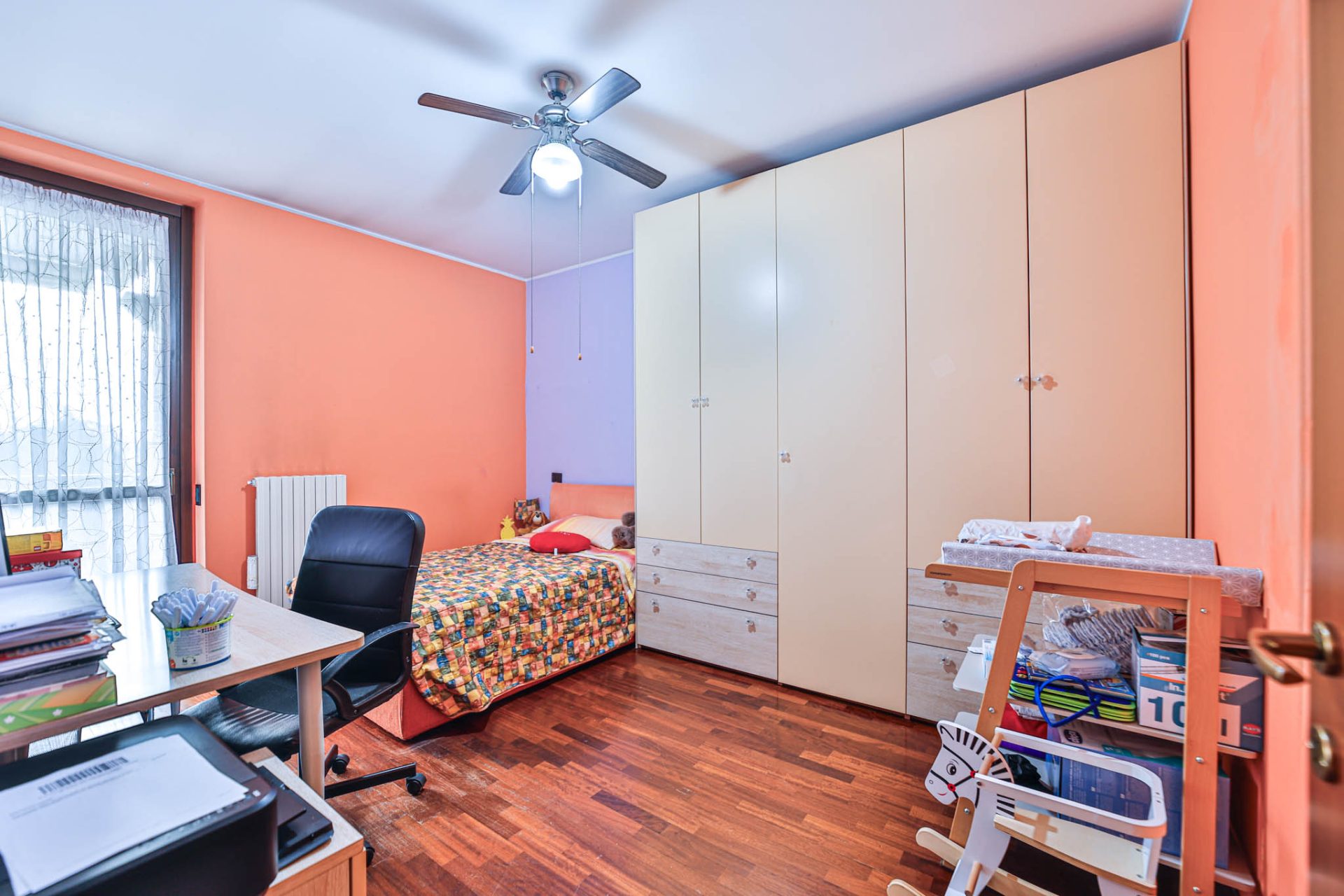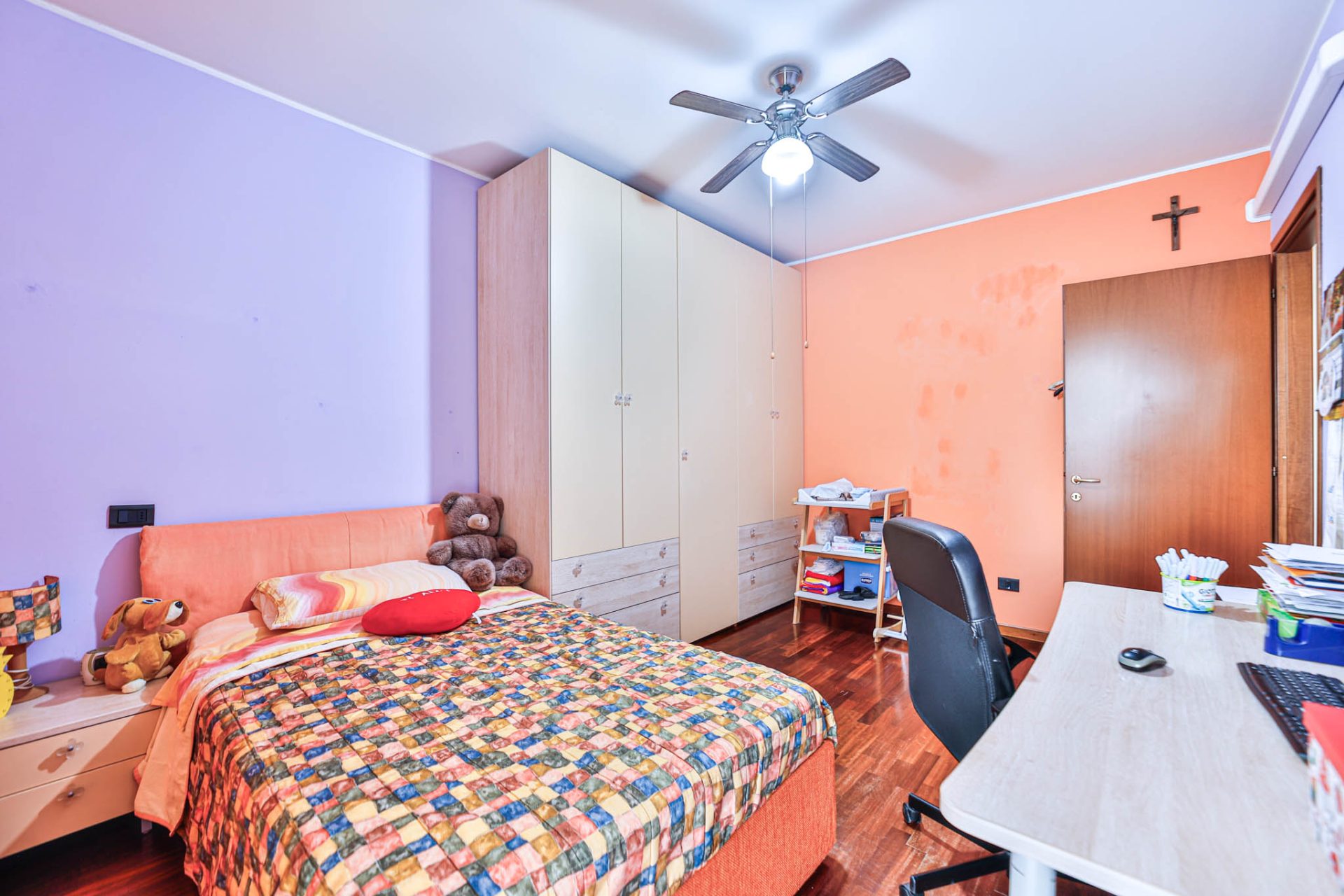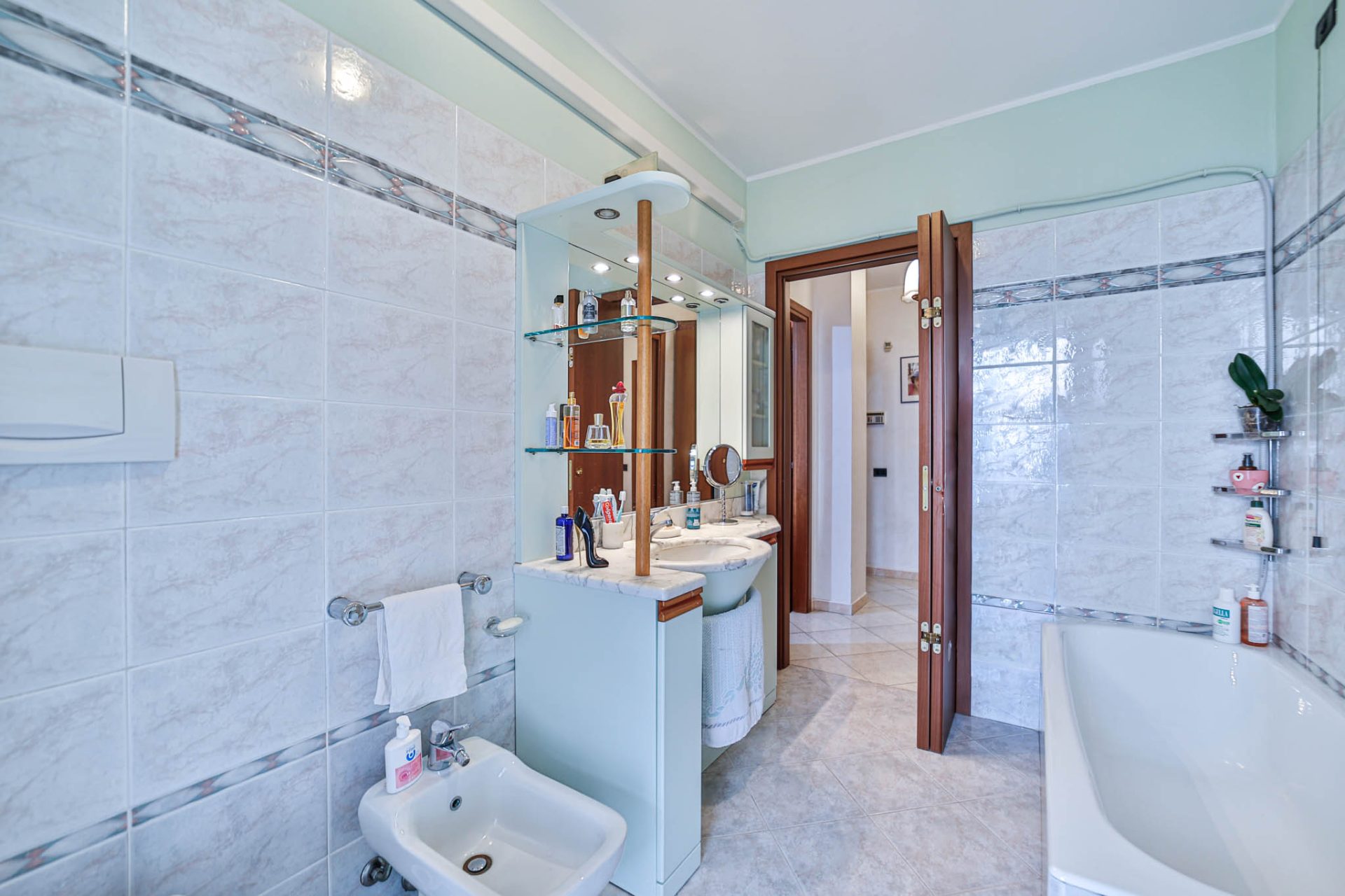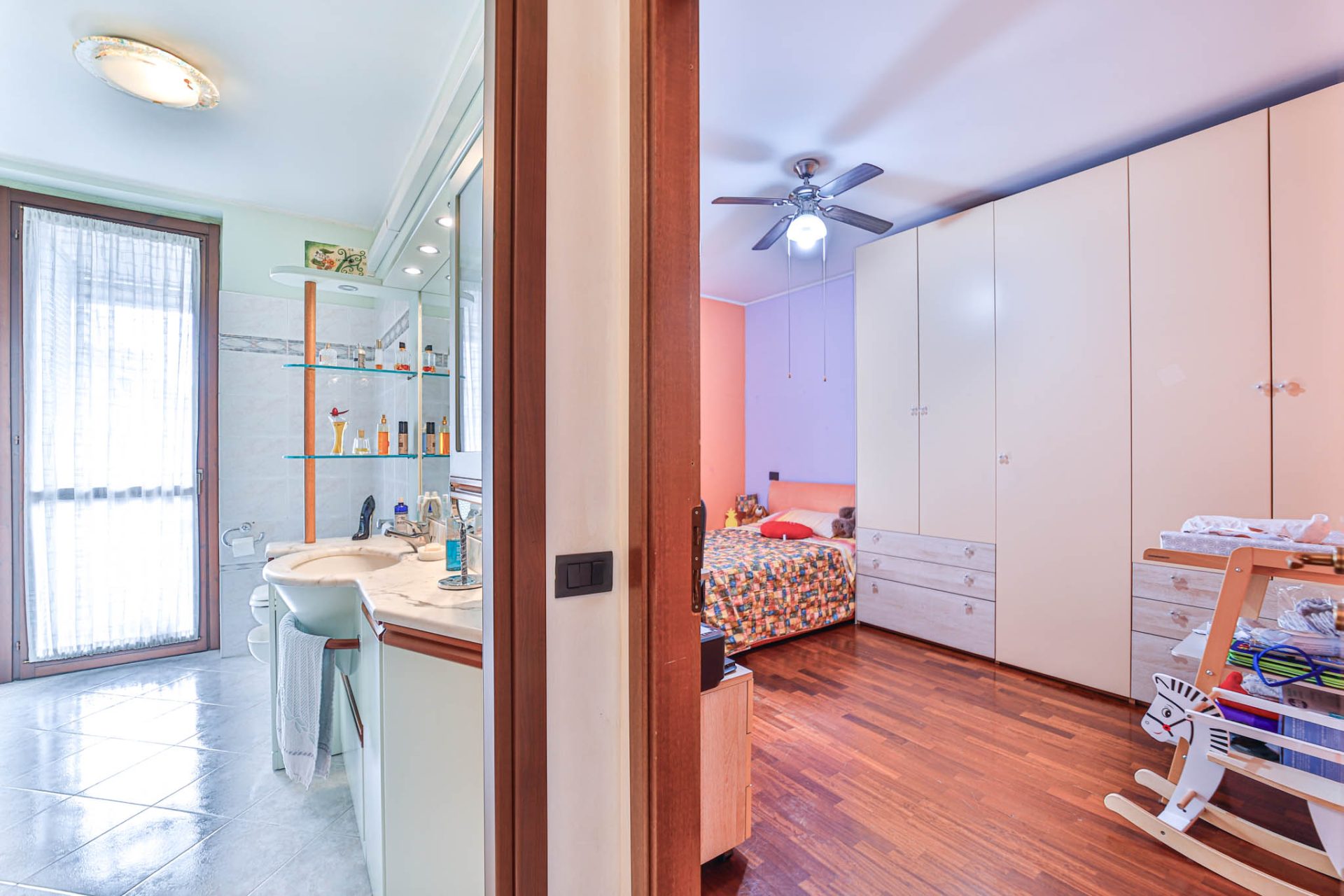La zona notte, ben separata, ospita un secondo bagno finestrato, una cameretta e una camera matrimoniale, pensata per garantire comfort e tranquillità.